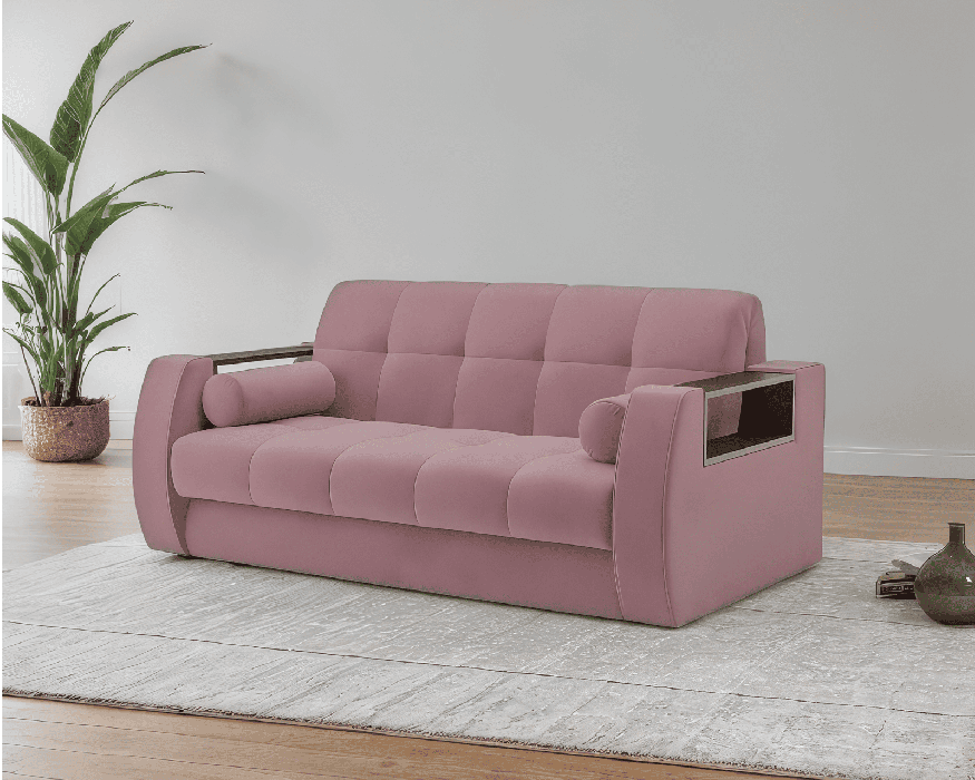 Особенностью модели являются встроенные в подлокотники, удобные полочки, выполненные из ЛДСП цвета темного Венге. Со встроенными полками можно сложить под рукой все необходимое и в одном месте — пульт от телевизора, наушники, зарядное устройство, стопку книг.