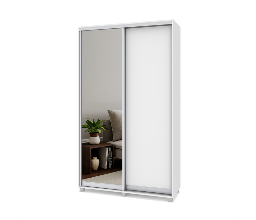 Шкаф купе 1300х450 2-х дверный с выдвижной штангой 1 зеркало Р432 (Белый)
