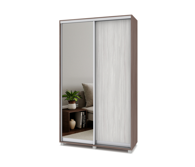 Отзывы о Столплит Шкаф купе 1300х450 2-х дверный с выдвижной штангой 1 зеркало Р432 Ясень шимо светлый/темный