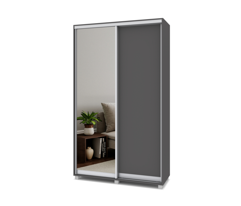 Шкаф купе 1300х450 2-х дверный с выдвижной штангой 1 зеркало Р432 (Графит)