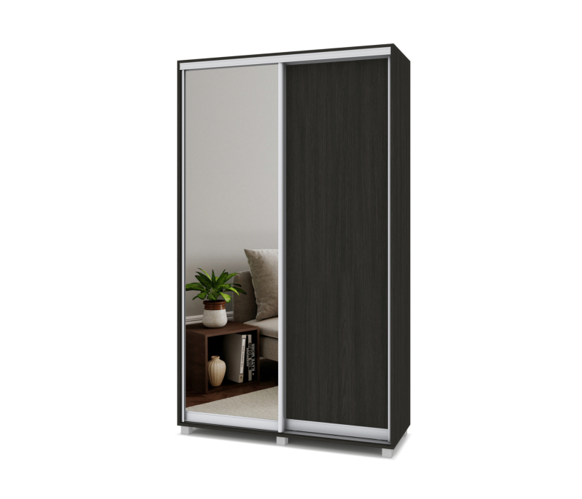 Шкаф купе 1300х450 2-х дверный с выдвижной штангой 1 зеркало Р432 (Венге)
