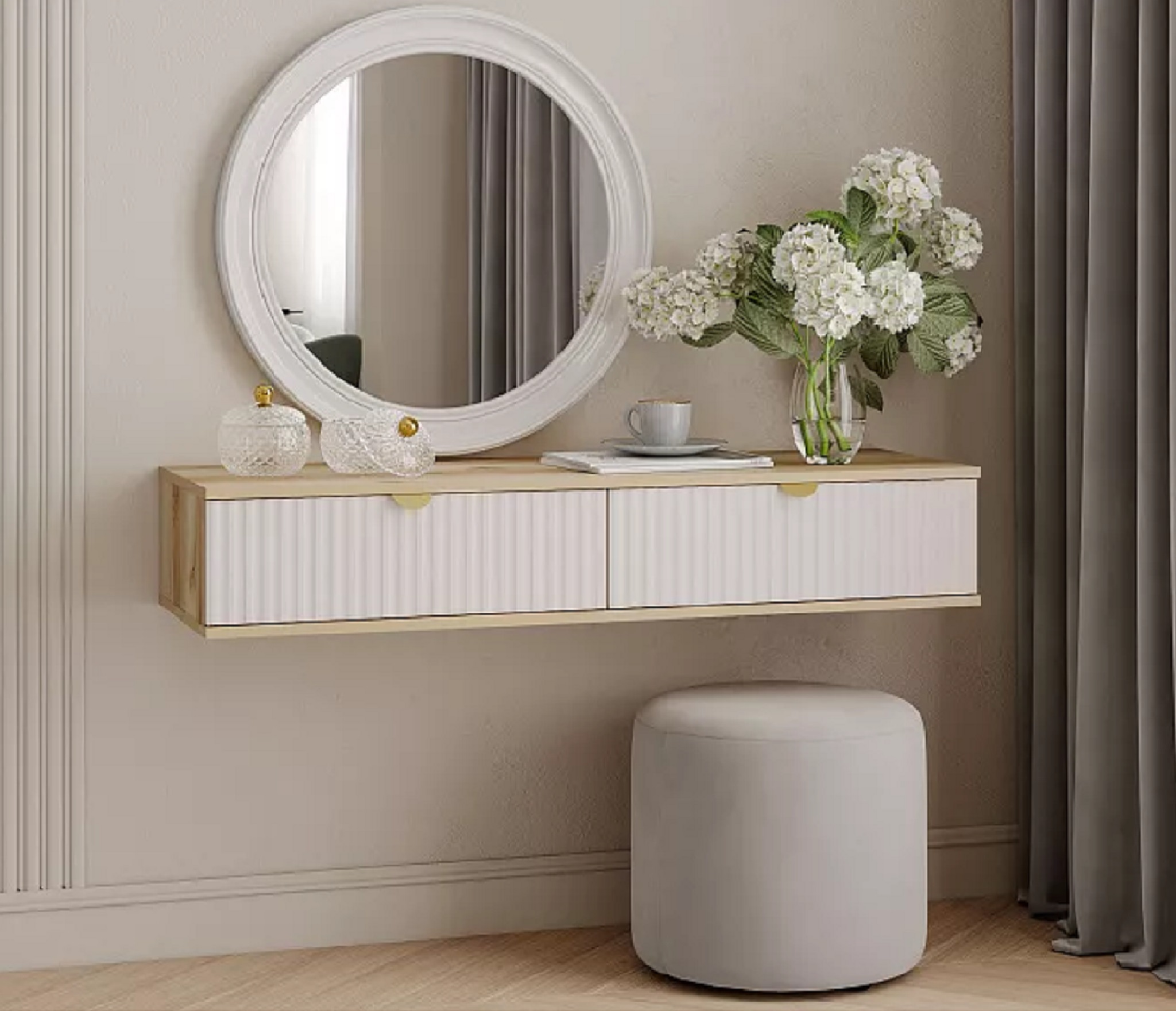 Тумба подвесная и может служить туалетным столиком или прикроватной тумбой.
