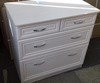 Комод 10 разработан для размещения в нём вещей разной габаритности.Для этого он оснащён 2-мя маленькими выдвижными ящиками.Далее по возврастанию,нижний ящик больше предидущего.Корпус ЛДСП,фасады рамочные МДФ.Производитель оставляет за собой право менять фурнитуру
