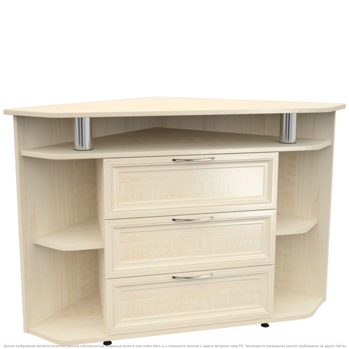 Комод 20 имеет 3 выдвижных ящика в центре, по бокам четыре угловые ниши, вверху полка. Верхняя платформа идеально рассчитана для установки телевизора, с возможностью установки дополнительной аппаратуры в нише под верхней платформой.Корпус комода выполнен из Ламинированной ДСП высокого качества с насыщенным цветом. Фасады выполнены из материала МДФ.Производитель оставляет за собой право менять фурнитуру.