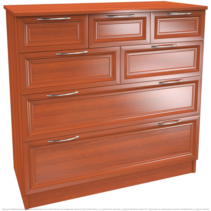 Но внешний вид идеально вписывается в дизайн спальни. А функциональность (7 ящиков) попробуй еще найди за такие деньги. Поэтому в целом комодом довольна.