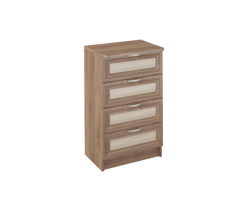 Комод ВС 500 благодаря не большой ширине 52 см,удачно разместится даже в маленьком помещении.Тем не менее,4 выдвижных ящика,позволяют разместить множество вещей.Корпус ЛДСП,фасады рамочные МДФ.Производитель оставляет за собой право менять фурнитуру.