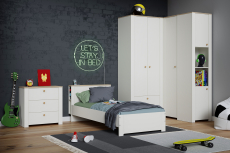 Джастин уникален тем, что подходит для разных возрастных категорий: для малышей — кроватка с защитным бортиком, съемными тканевыми кармашками и выкатными ящиками; для подростков – кровать с полноценным спальным местом и нишей для книг в изголовье; всевозможные модули для хранения. А в ящик письменного стола можно спрятать под замочек свои сокровища и секреты.