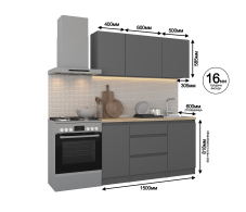 Кухонный гарнитур Леон прямой 150 см, диамант серый (Диамант серый) Код 00000334937