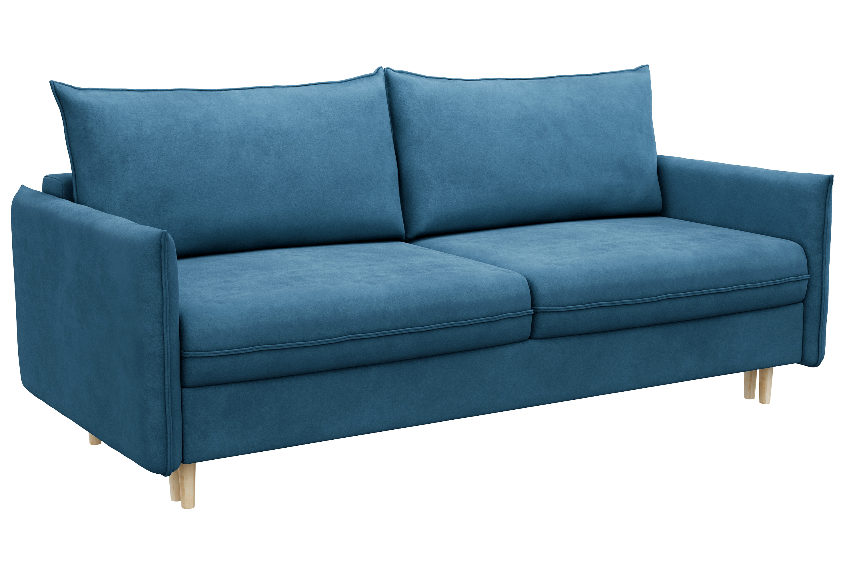 Этот раскладной диван не только стильный, но и функциональный: деревянные высокие ножки не только приподнимают модель для создания визуальной легкости, но и облегчают уборку под мебелью.