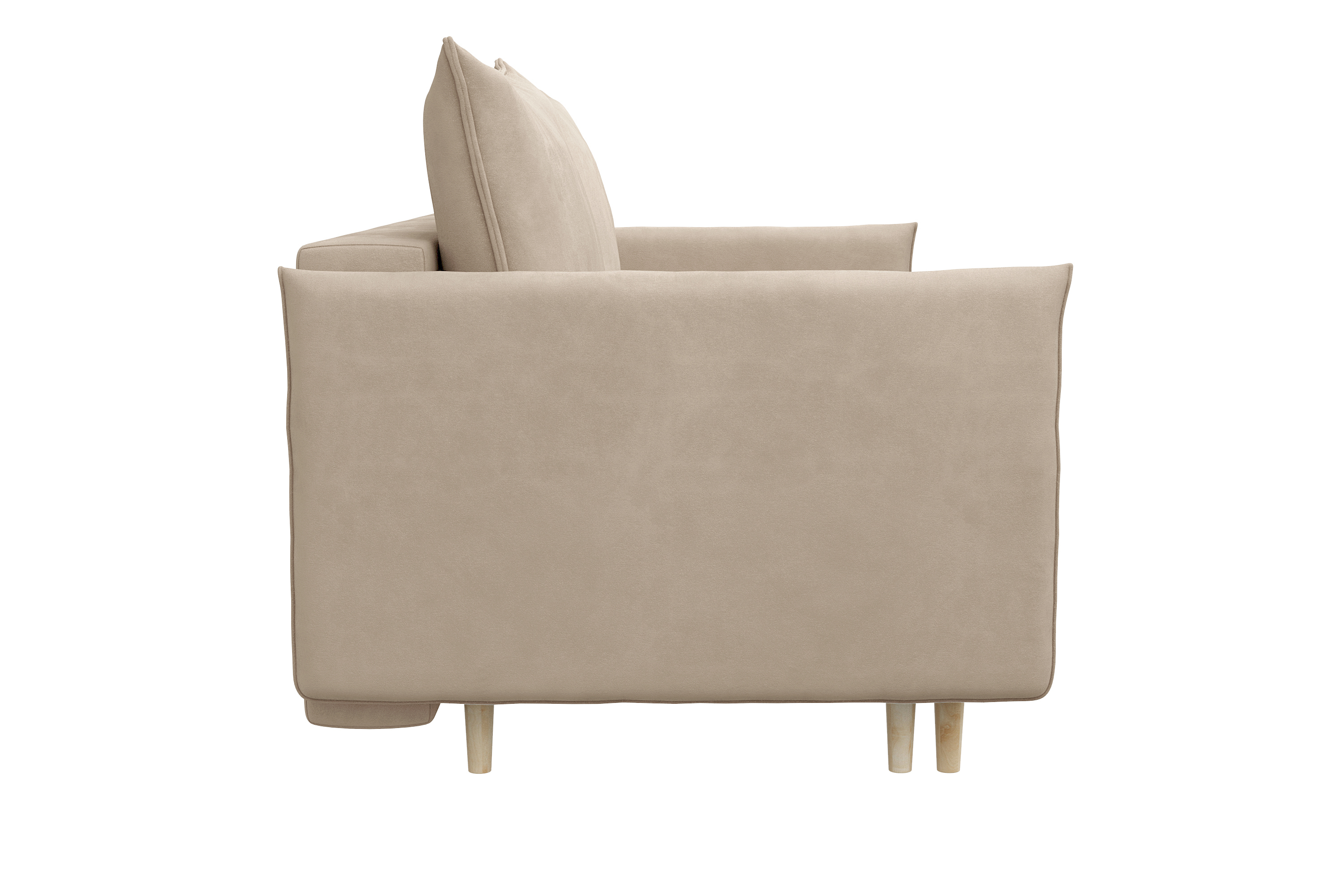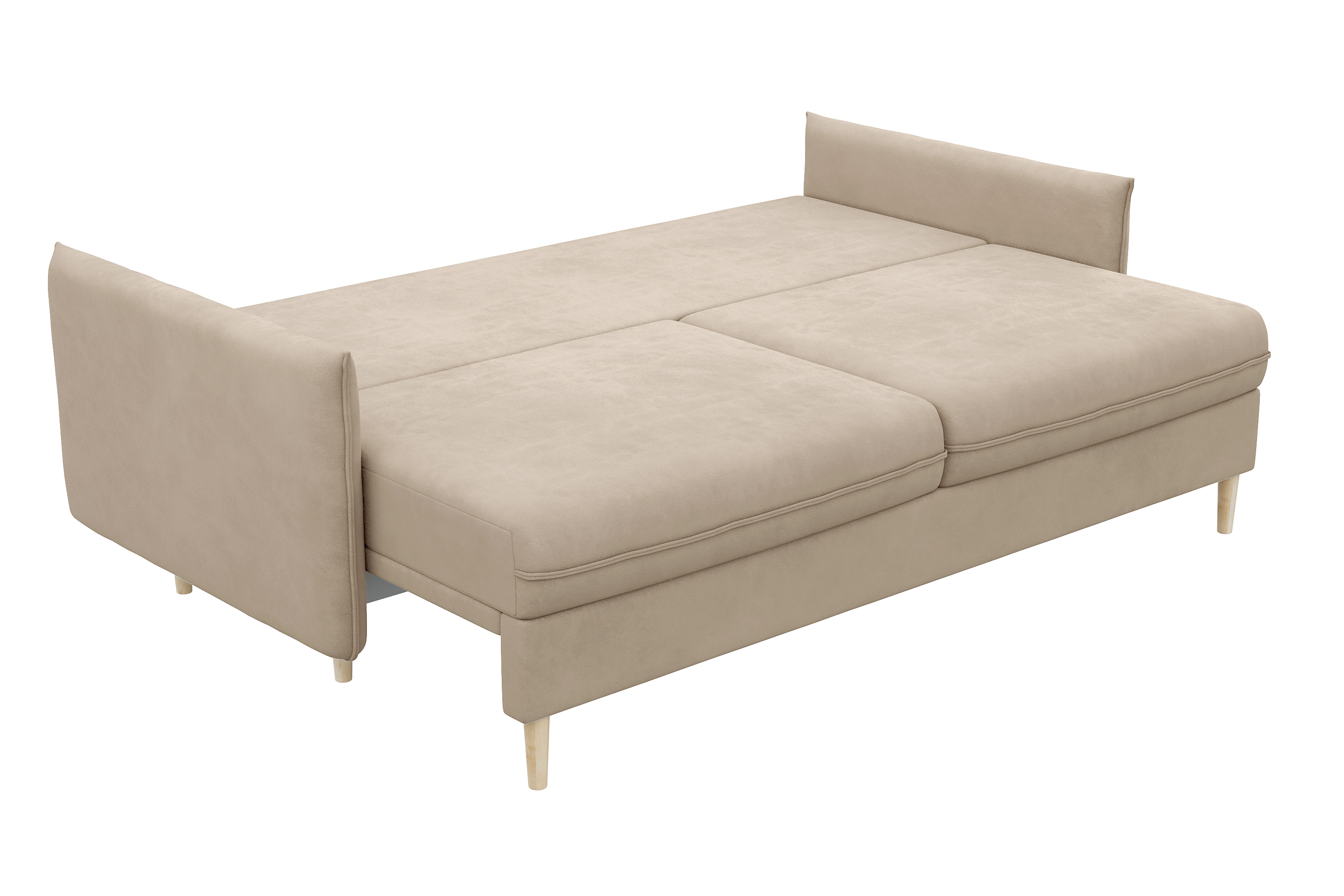 Этот раскладной диван не только стильный, но и функциональный: деревянные высокие ножки не только приподнимают модель для создания визуальной легкости, но и облегчают уборку под мебелью.