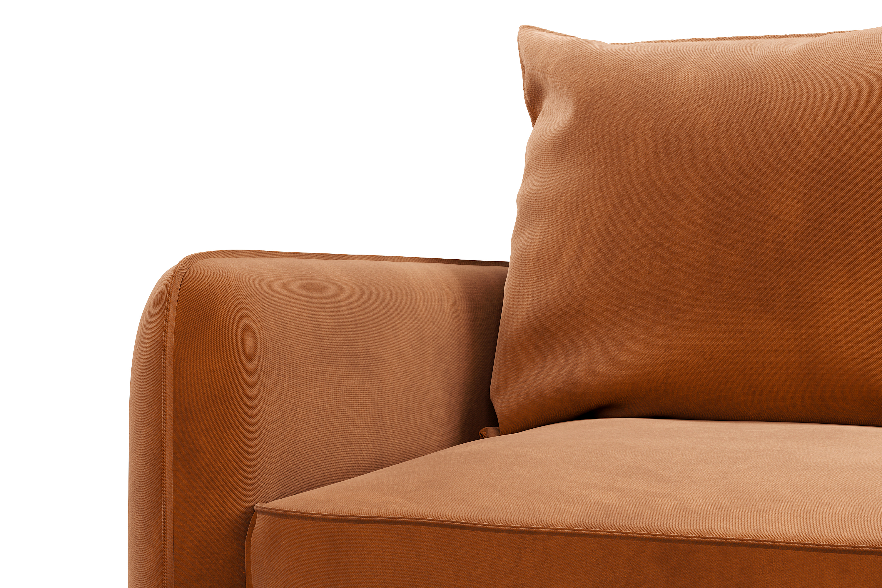 Обивка дивана - мягкий бархатистый премиальный велюр. Тонкая динамика узора обивки создаёт в пространстве ощущение лёгкости и движения. Технология Waterproof делает ткань устойчивой к влаге, и благодаря этому обивка долговечна и проста в уходе.