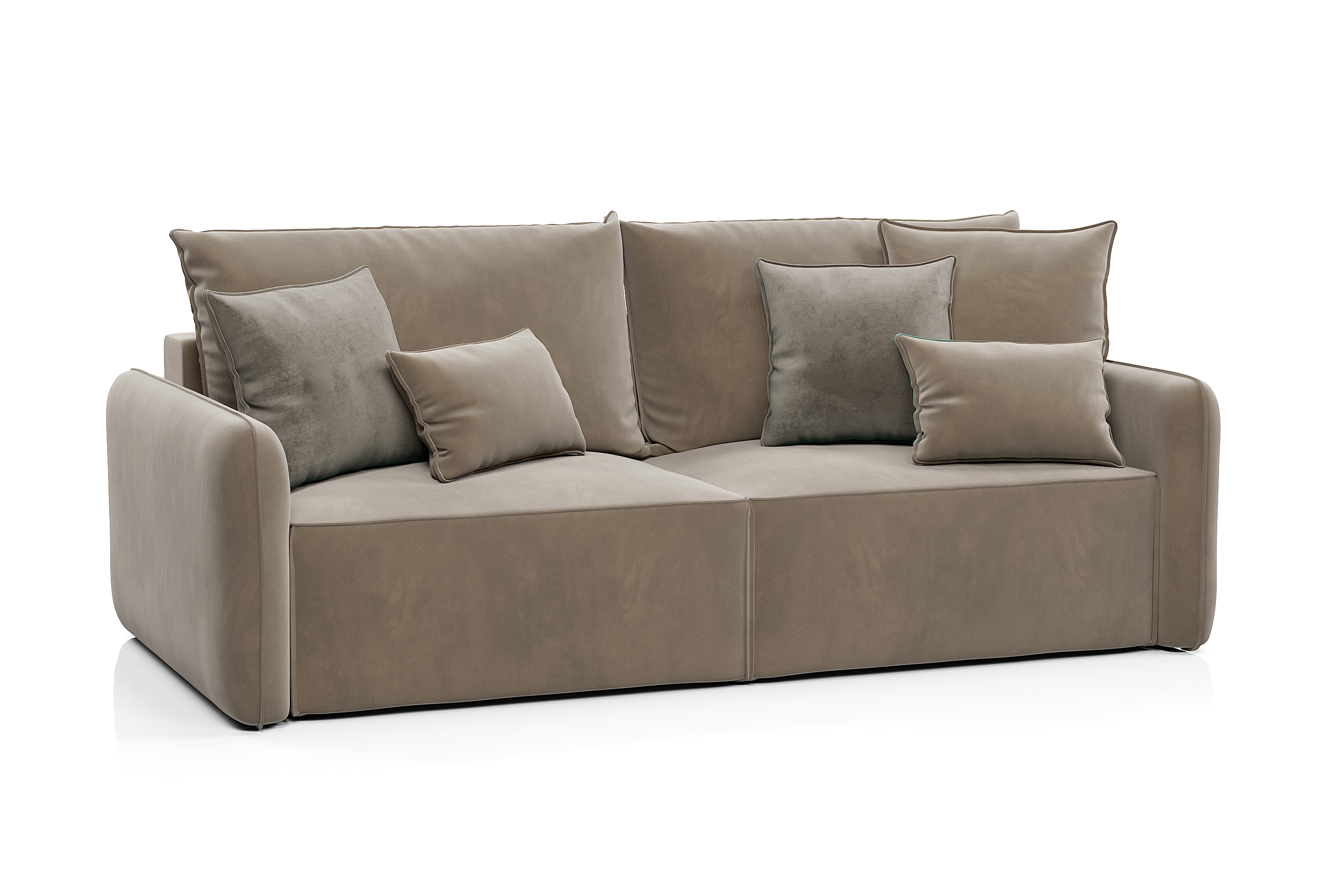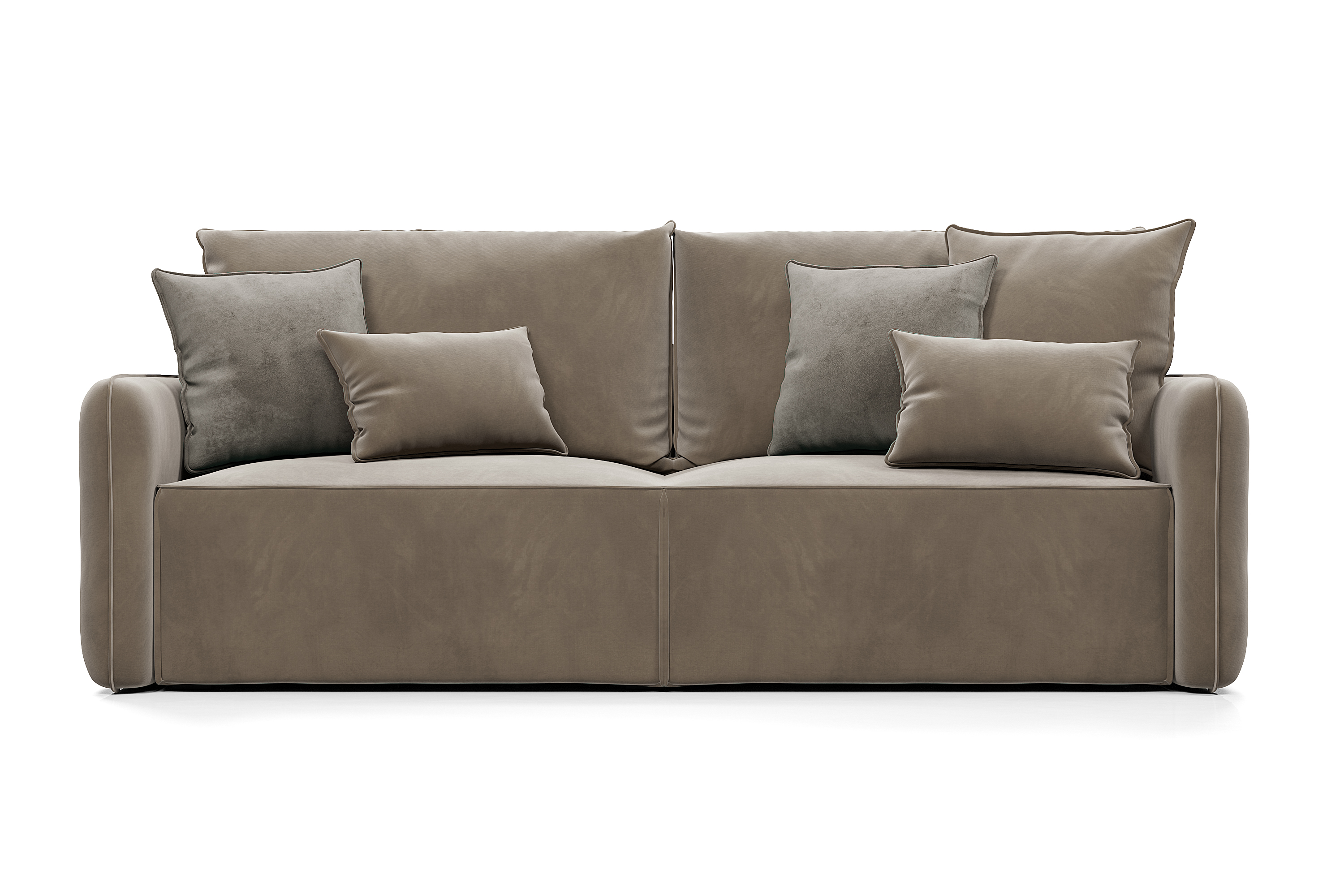 Обивка дивана - мягкий бархатистый премиальный велюр. Тонкая динамика узора обивки создаёт в пространстве ощущение лёгкости и движения. Технология Waterproof делает ткань устойчивой к влаге, и благодаря этому обивка долговечна и проста в уходе.