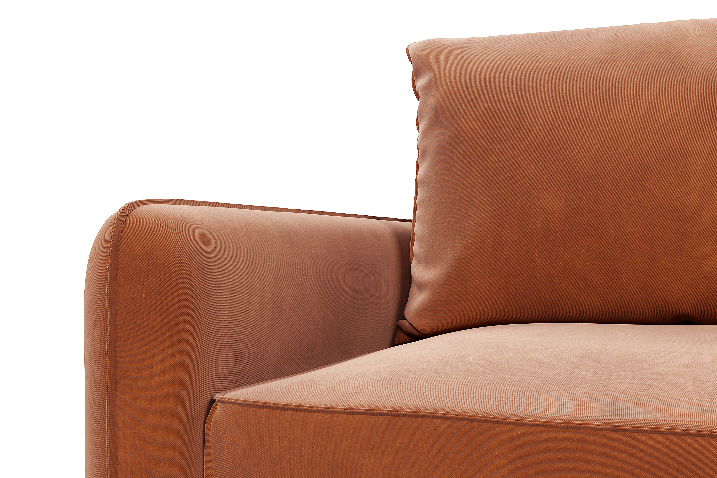 Обивка дивана - мягкий бархатистый премиальный велюр. Тонкая динамика узора обивки создаёт в пространстве ощущение лёгкости и движения. Технология Waterproof делает ткань устойчивой к влаге, и благодаря этому обивка долговечна и проста в уходе.