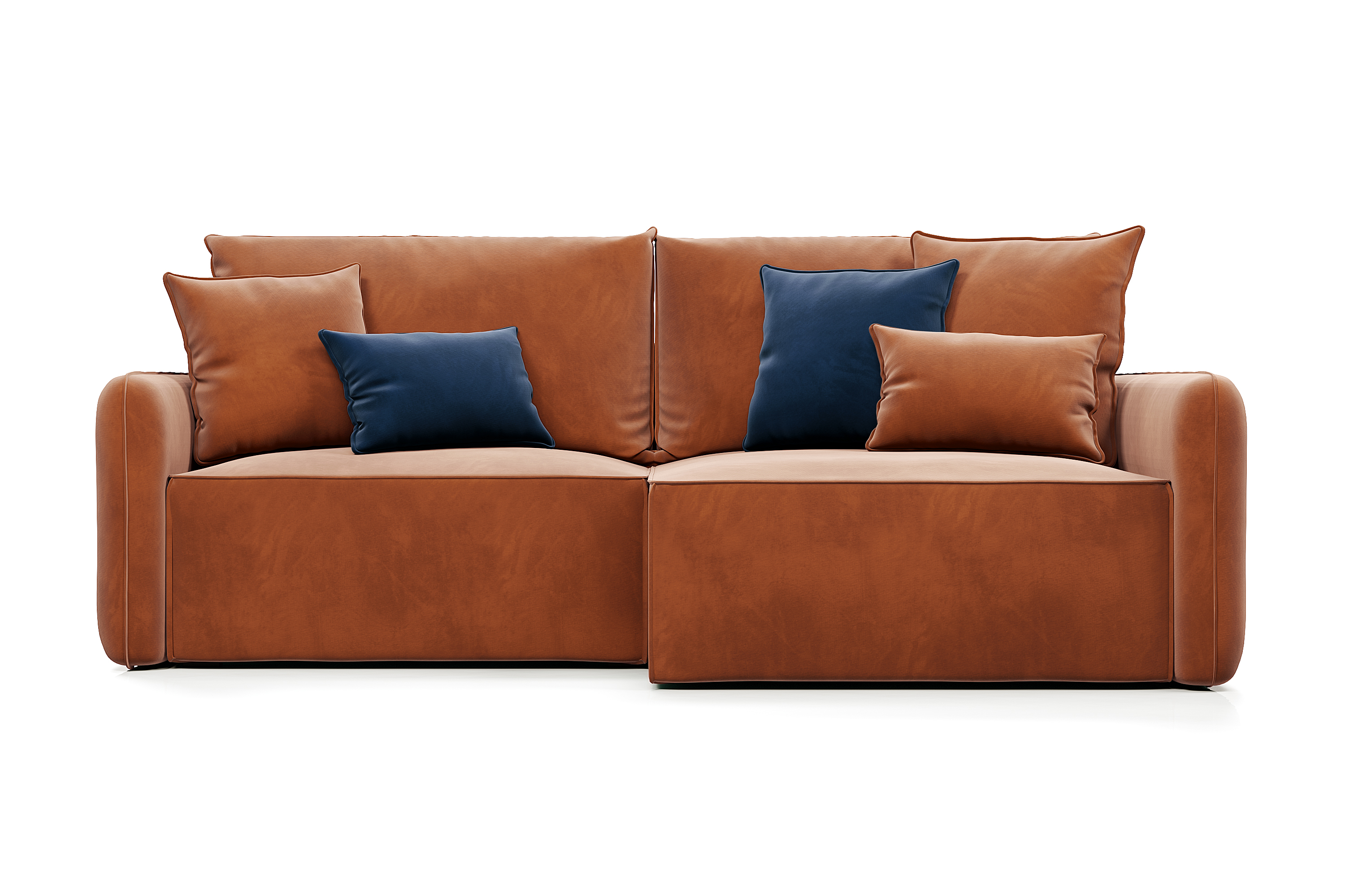 Обивка дивана - мягкий бархатистый премиальный велюр. Тонкая динамика узора обивки создаёт в пространстве ощущение лёгкости и движения. Технология Waterproof делает ткань устойчивой к влаге, и благодаря этому обивка долговечна и проста в уходе.