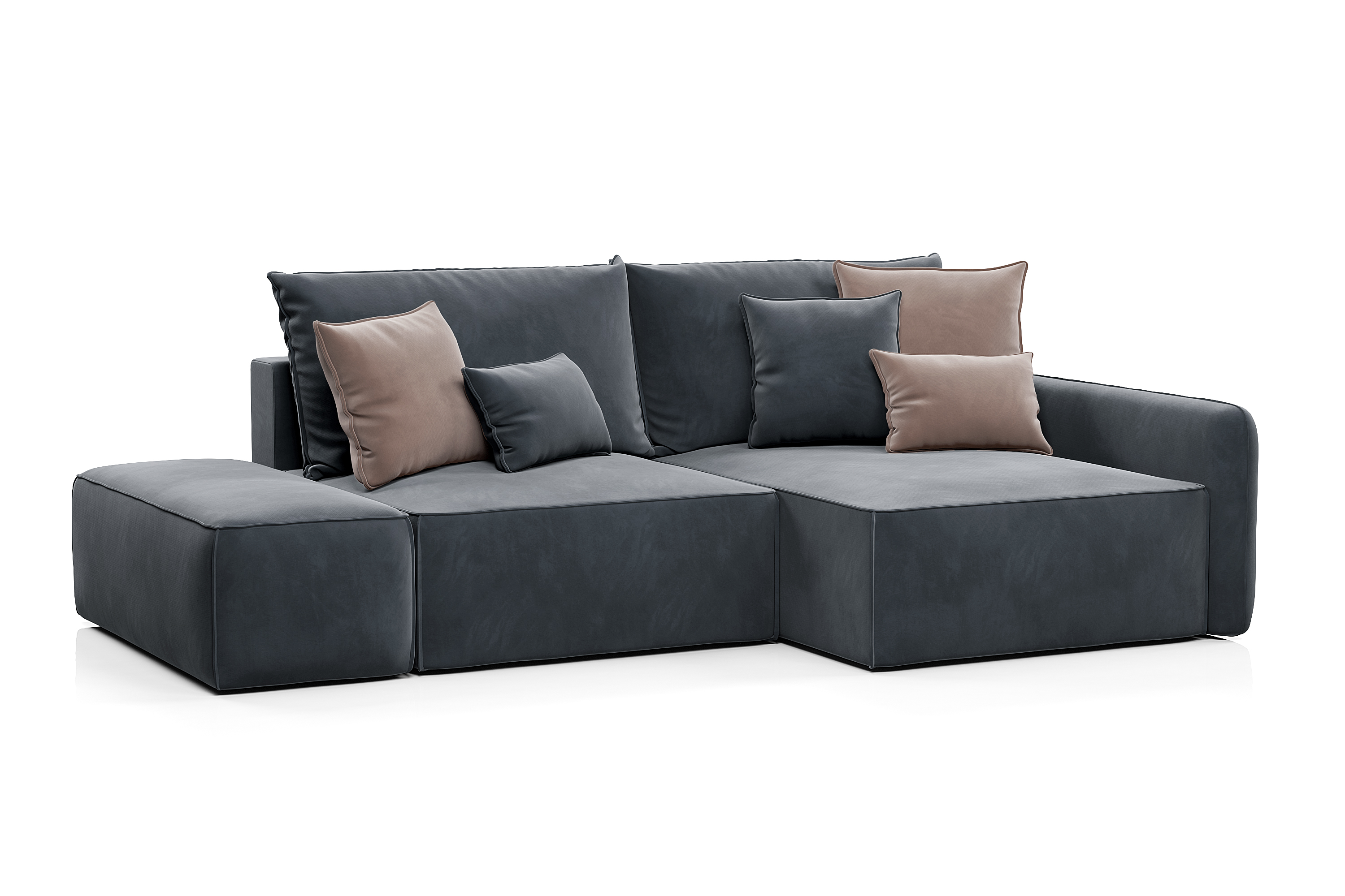 Обивка дивана - мягкий бархатистый премиальный велюр. Тонкая динамика узора обивки создаёт в пространстве ощущение лёгкости и движения. Технология Waterproof делает ткань устойчивой к влаге, и благодаря этому обивка долговечна и проста в уходе.