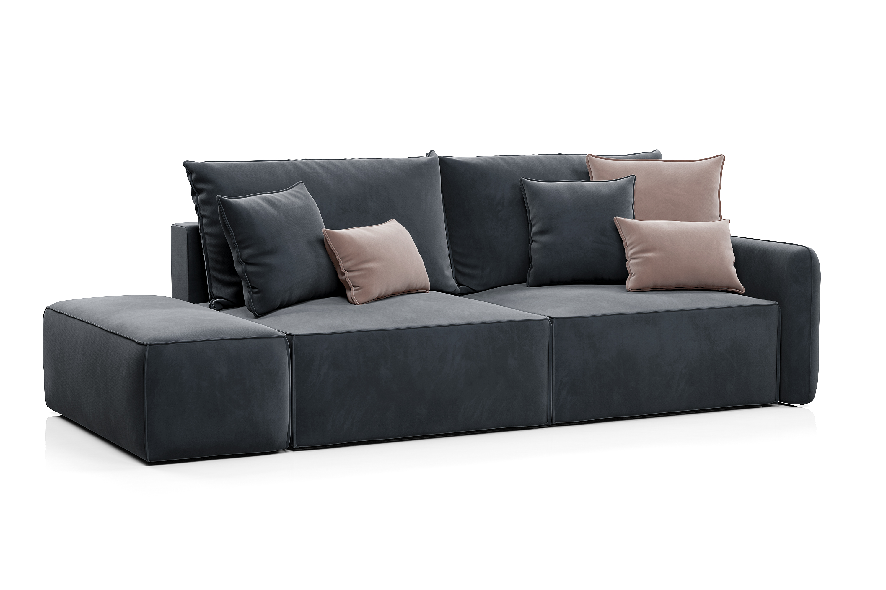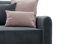 Обивка дивана - мягкий бархатистый премиальный велюр. Тонкая динамика узора обивки создаёт в пространстве ощущение лёгкости и движения. Технология Waterproof делает ткань устойчивой к влаге, и благодаря этому обивка долговечна и проста в уходе.