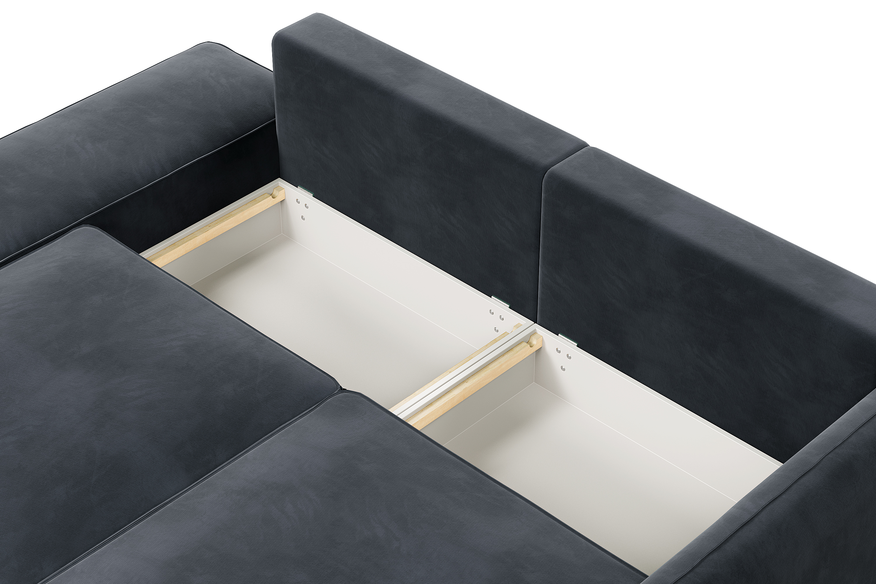 Под сиденьем предусмотрен вместительный бельевой ящик, в который можно легко убрать несколько одеял и подушек.