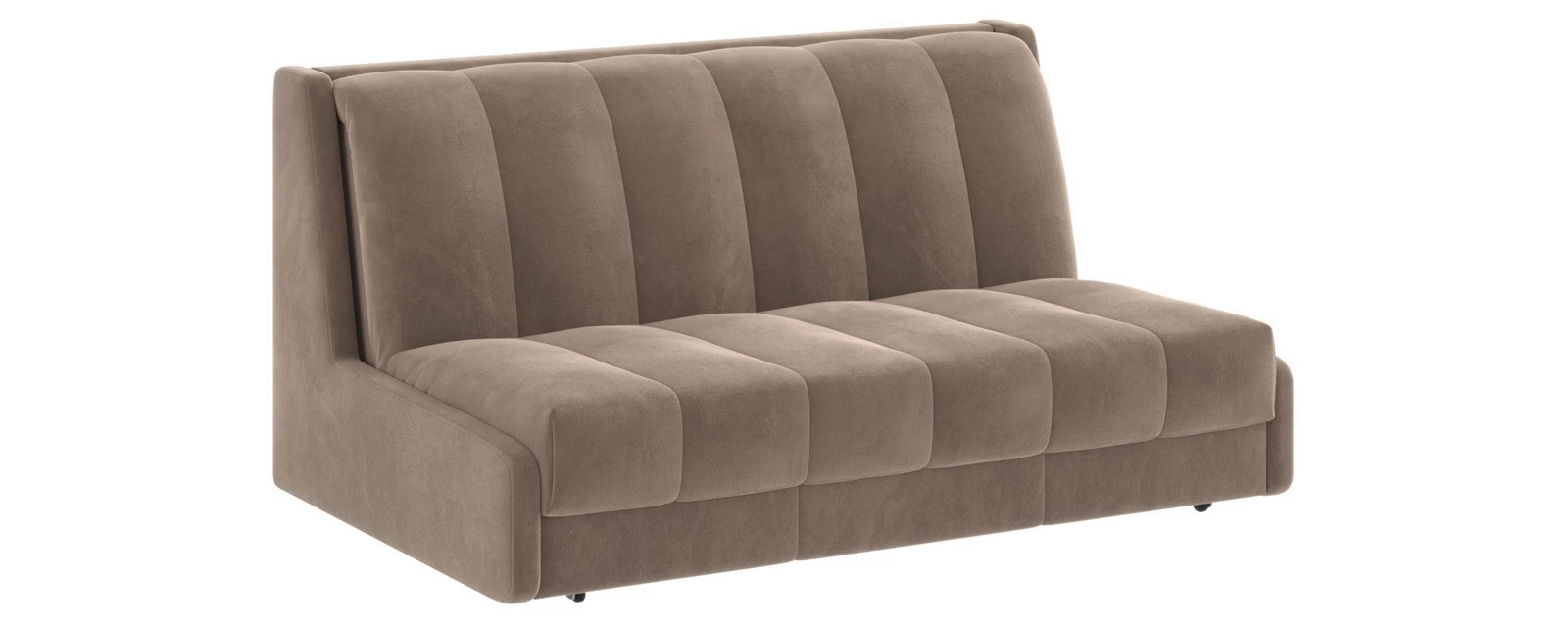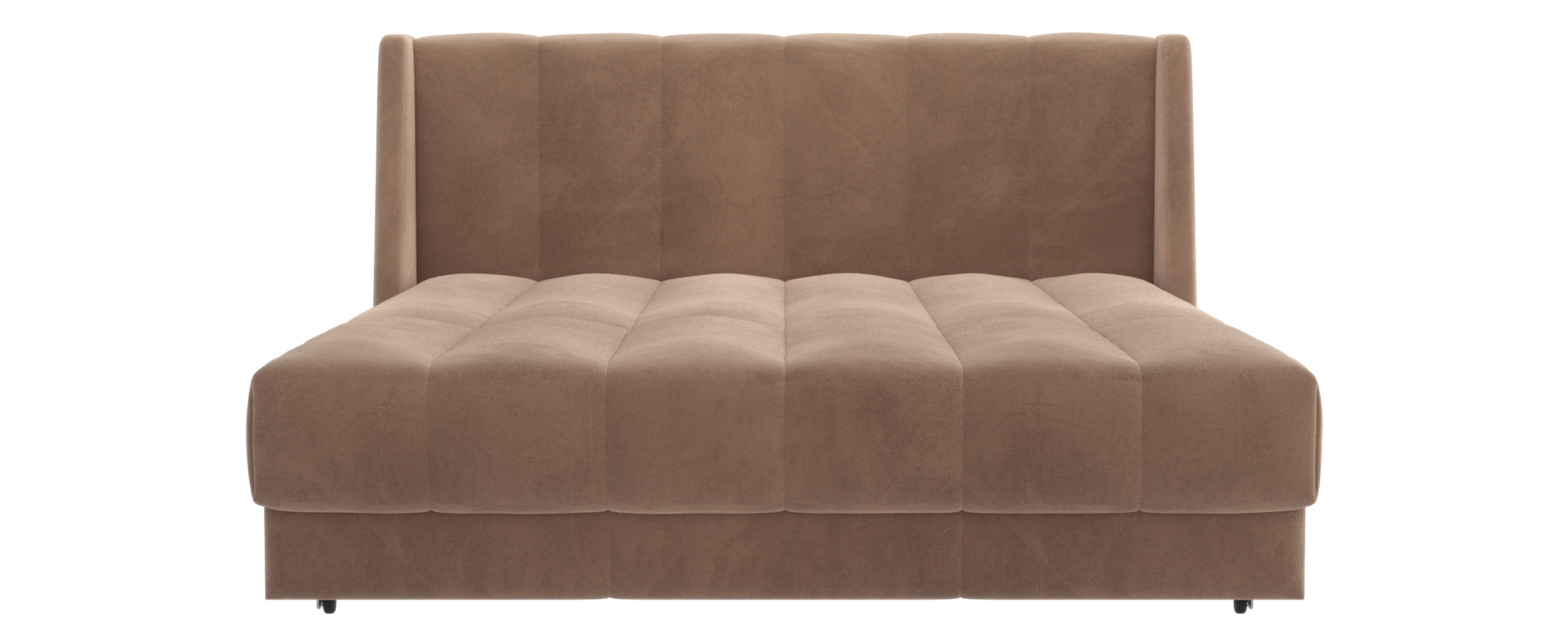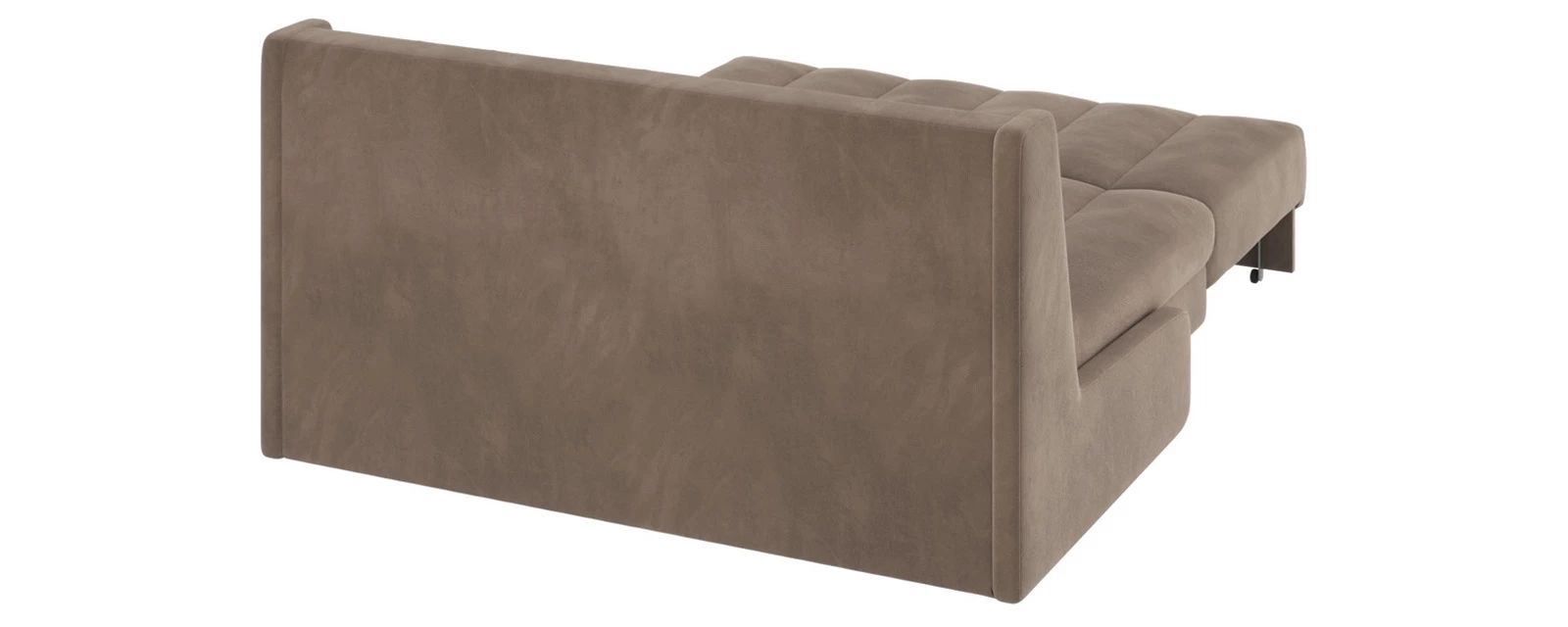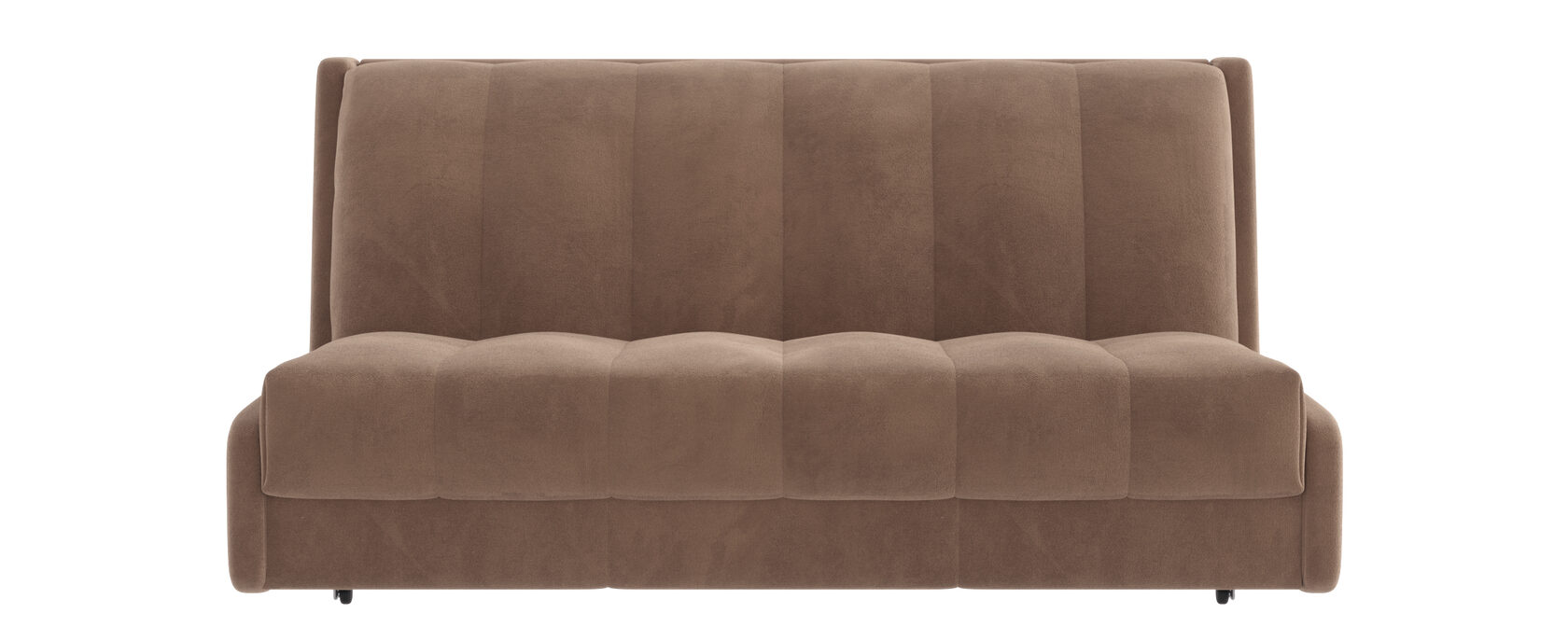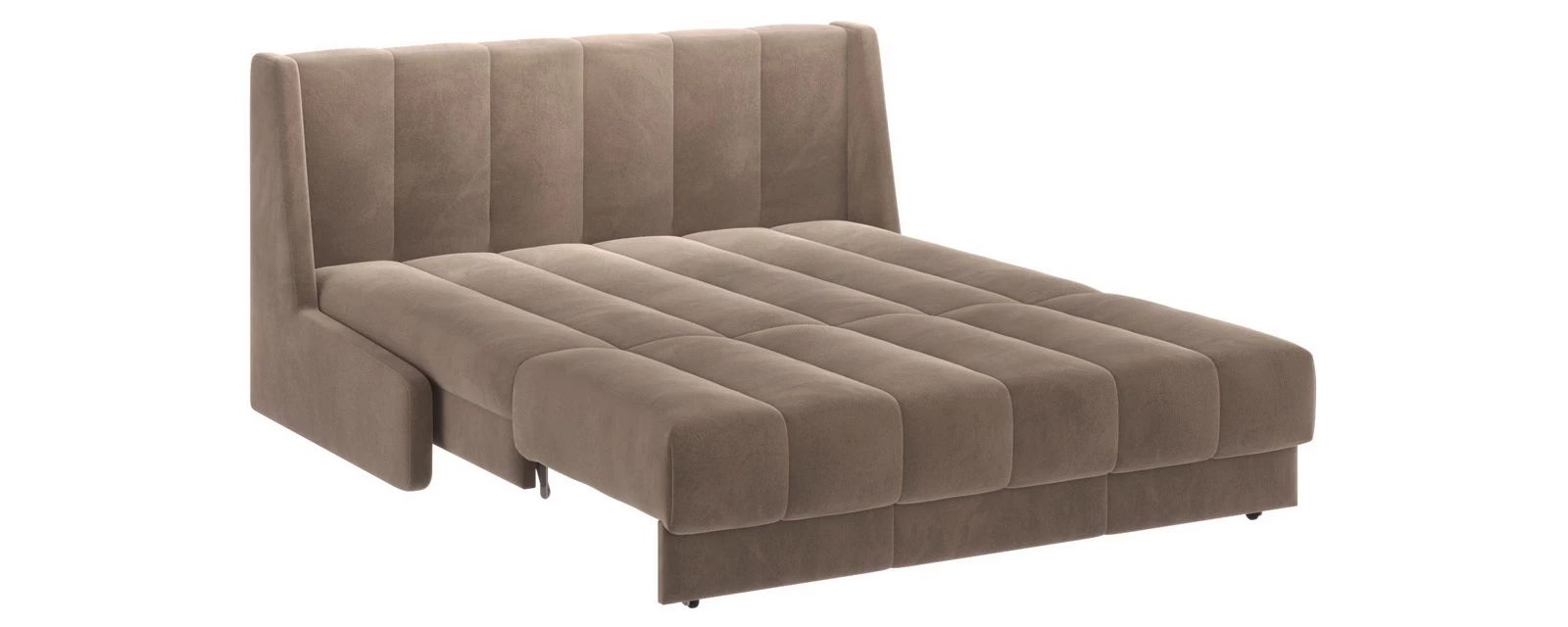 В разложенном виде диван выглядит как красивая дизайнерская кровать, что позволяет не собирать его ежедневно. Благодаря механизму ""аккордеон"" он легко раскладывается - просто выкатывается вперед. Прорезиненные колесики бережно относятся к напольному покрытию. Диван компактный в собранном виде, а в разложенном имеет ровное бесшовное спальное место с цельным матрасом. Спать на нем удобно как на кровати! Бельевой короб в комплект не входит, но его можно приобрести отдельно.