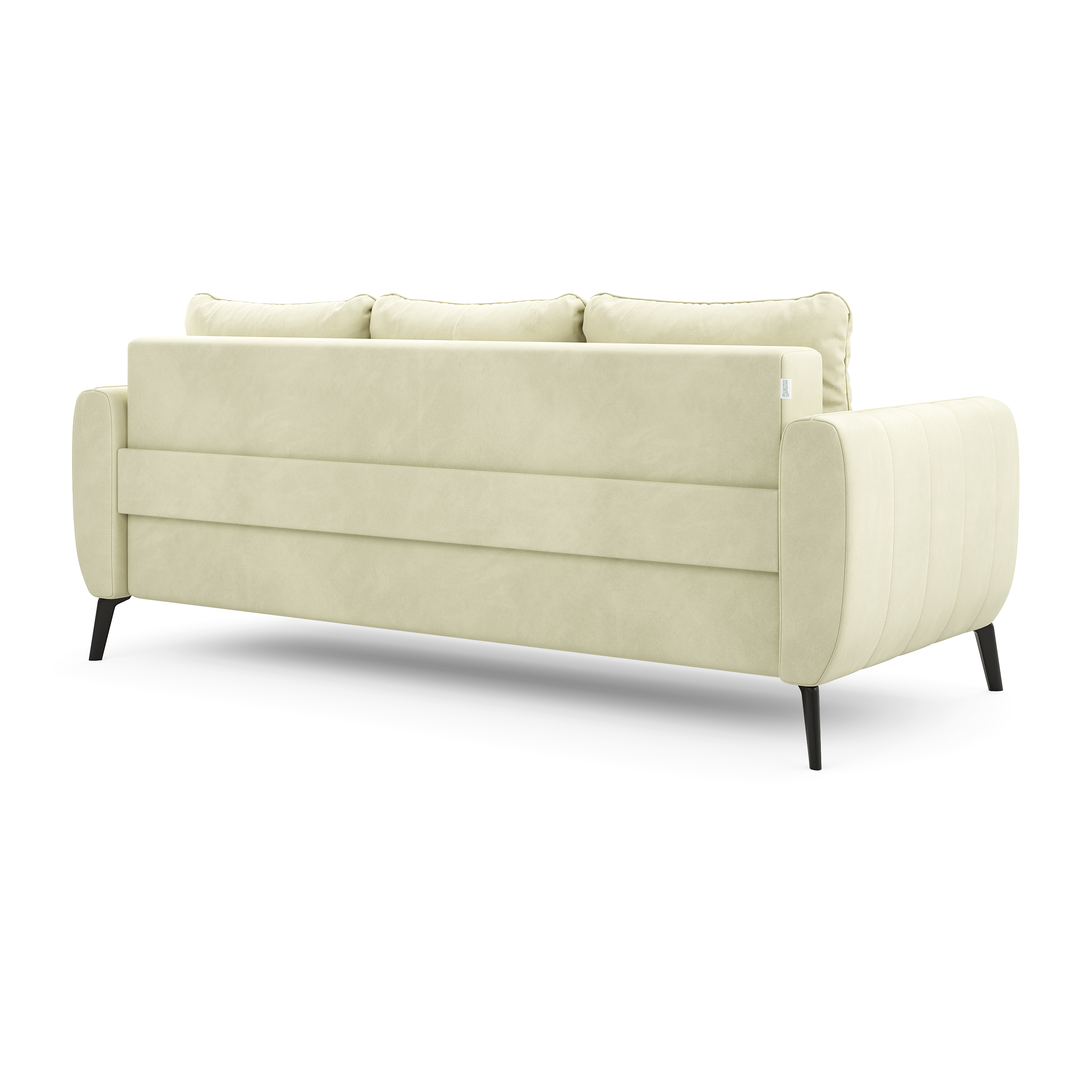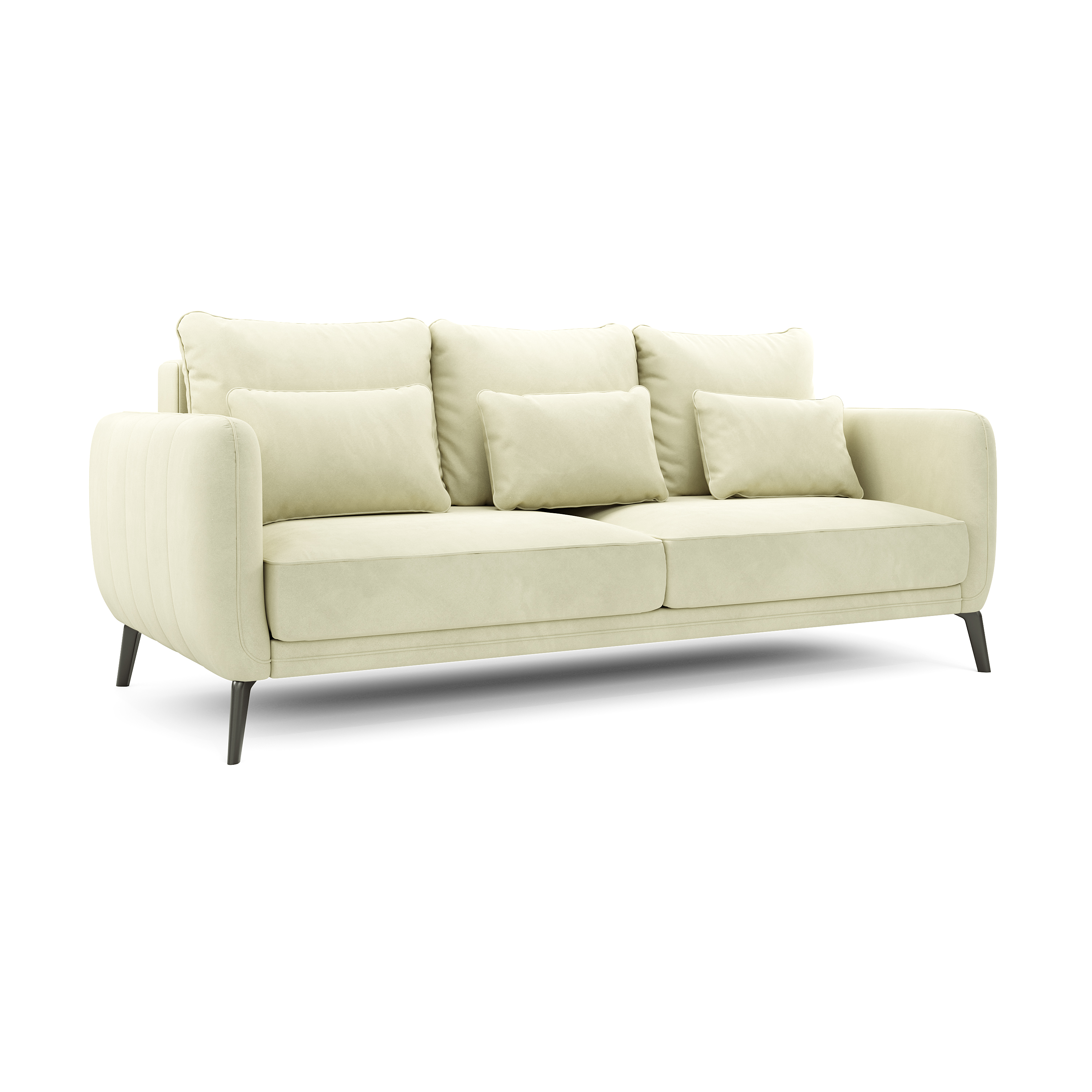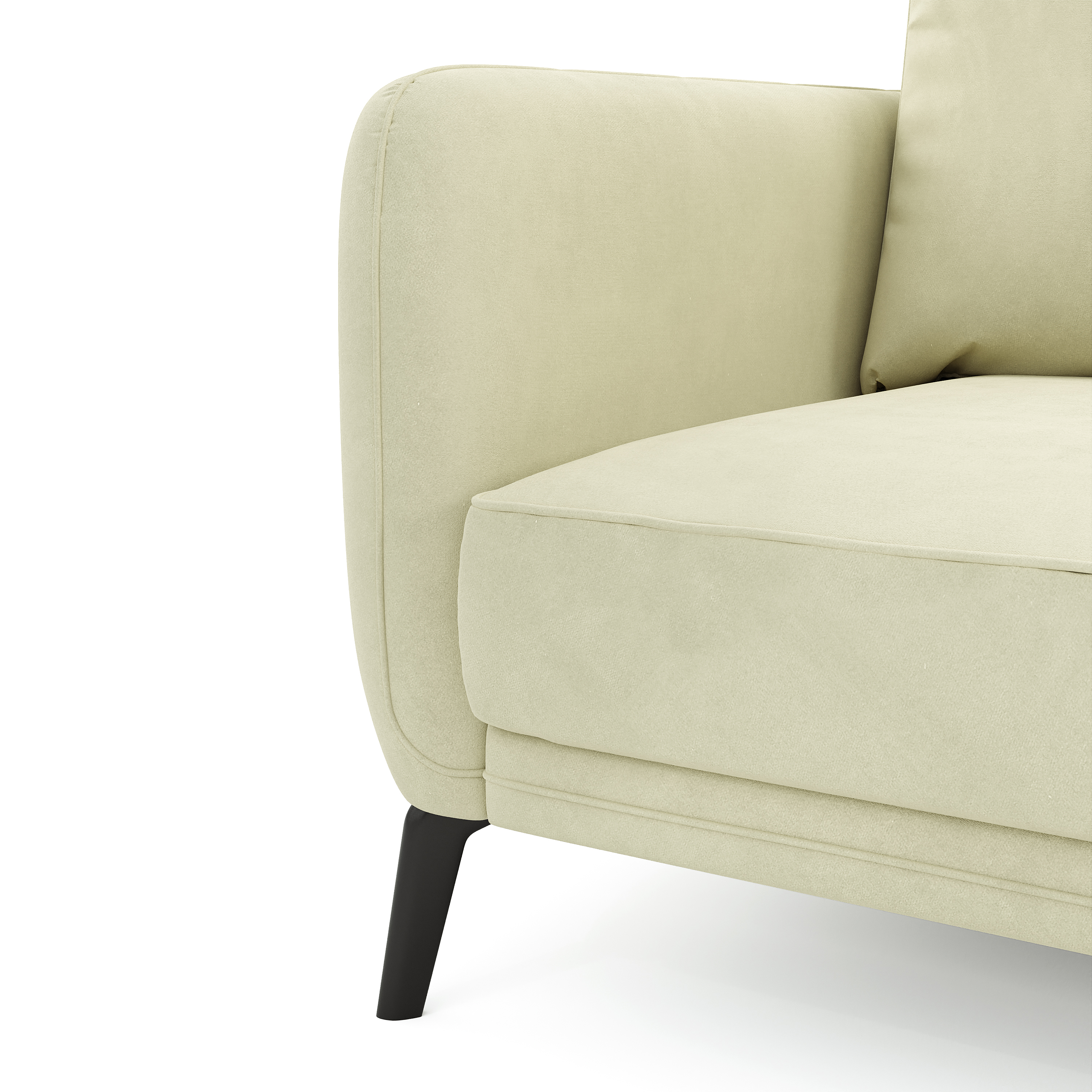 Особенности этой модели — удобная мягкая спинка, выполненная из основной ткани и подлокотники с красивой отстрочкой и кантом. Съемные чехлы на подушках легко чистить. Высокие ножки дивана позволяют роботу-пылесосу без препятствий выполнять уборку.