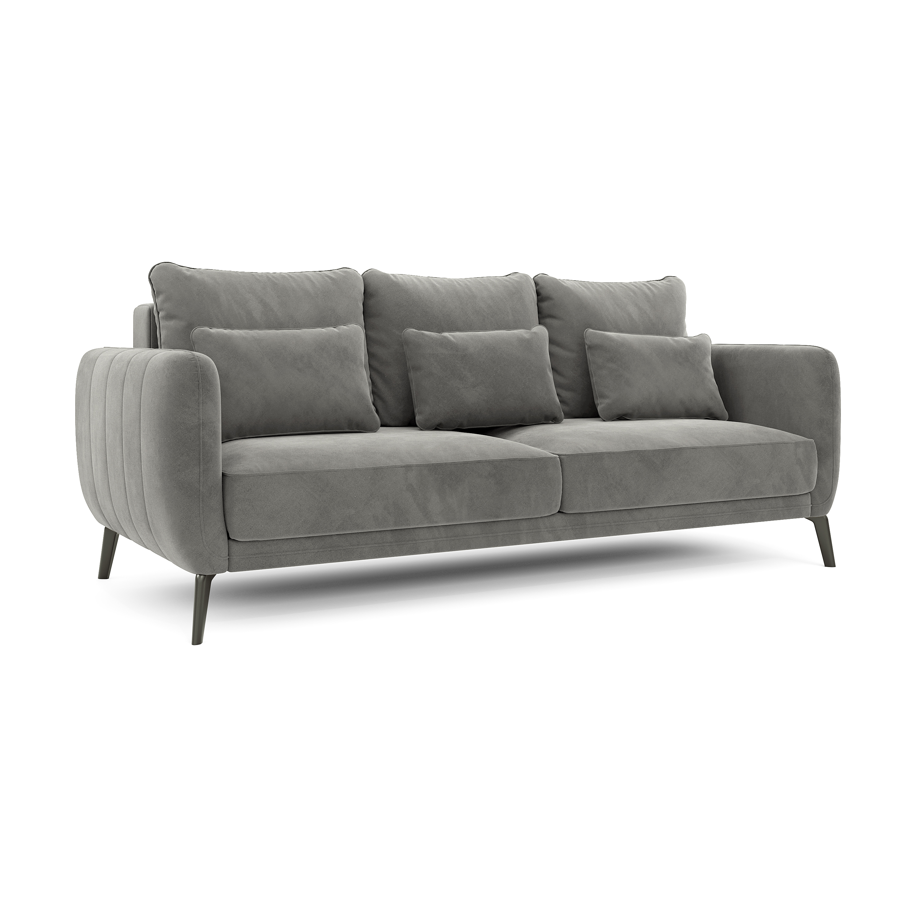 Особенности этой модели — удобная мягкая спинка, выполненная из основной ткани и подлокотники с красивой отстрочкой и кантом. Съемные чехлы на подушках легко чистить. Высокие ножки дивана позволяют роботу-пылесосу без препятствий выполнять уборку.