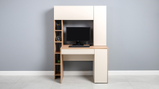 Стол компьютерный Комфорт 12.71 — мини-кабинет для комфортной работы дома или в офисе. Конструктивно стол состоит из большой столешницы, выдвижного ящика и тумбы под ней, шкафа-стеллажа и надстройки. Все элементы гармонично дополняют друг друга, составляя удобное рабочее место, занимающее небольшую площадь. На столешнице достаточно места для размещения учебных и рабочих принадлежностей, ноутбука или монитора. Также, на столешнице имеется пластиковая заглушка для протягивания проводов от техники к источнику питания. Под столешницей в центре размещен выдвижной ящик для канцелярии, а справа размещена закрытая распашной дверкой ниша, размеры которой позволяют расположить в ней системный блок компьютера стандартной величины. Шкаф-стеллаж, расположенный слева, имеет глубину меньше, чем столешница, и состоит из нескольких открытых полочек. Со столом стеллаж совмещается при помощи надстройки, представленной в виде горизонтальной и вертикальной закрытых дверками ниш. На открытых полочках Вы можете расположить документацию, учебные материалы, книги, журналы, предметы декора или игрушки. Предметы, которые необходимо скрыть от посторонних глаз, можно разместить в закрытых нишах. Стол компьютерный изготовлен на компьютеризированном оборудовании из современных материалов высокого качества. Ламинированная ДСП имеет толщину 16 мм, торцы деталей закромлены пленкой ПВХ. Подъемная дверка закреплена на газлифте, распашная – на четырехшарнирных петлях, ящик – на роликовых направляющих, ручки на фасадах пластиковые. При поставке стол разобран, надежно упакован, к изделию приложена подробная инструкция по сборке и необходимая фурнитура.