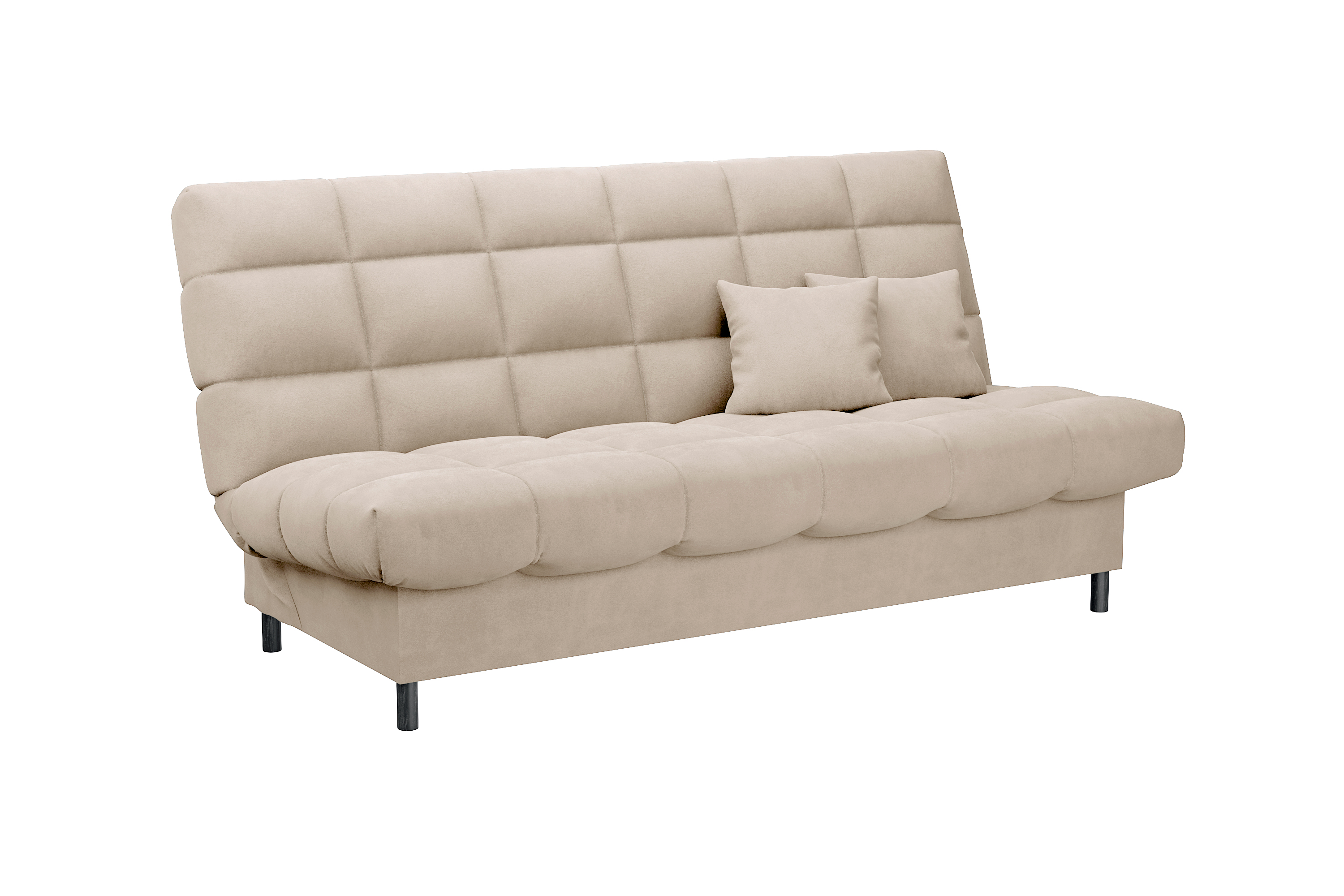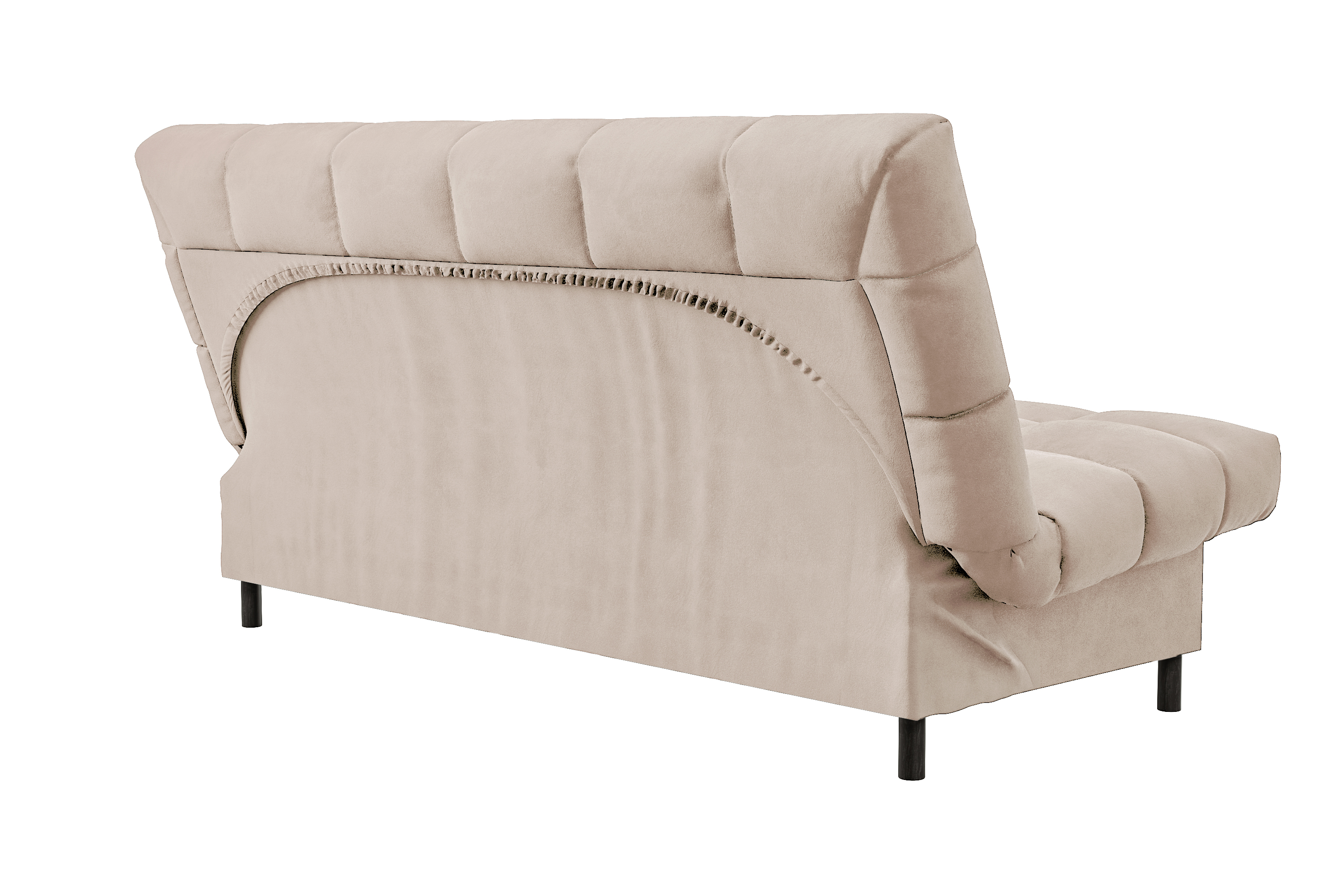 Обивка дивана - мягкий бархатистый велюр. Это тактильно приятная и очень практичная ткань. Всю мягкую поверхность модели украшает строчка прямоугольниками.