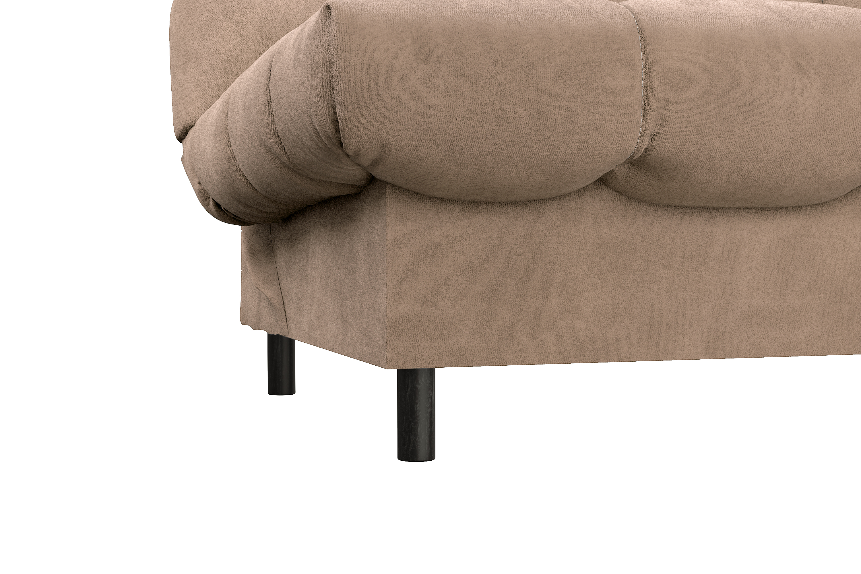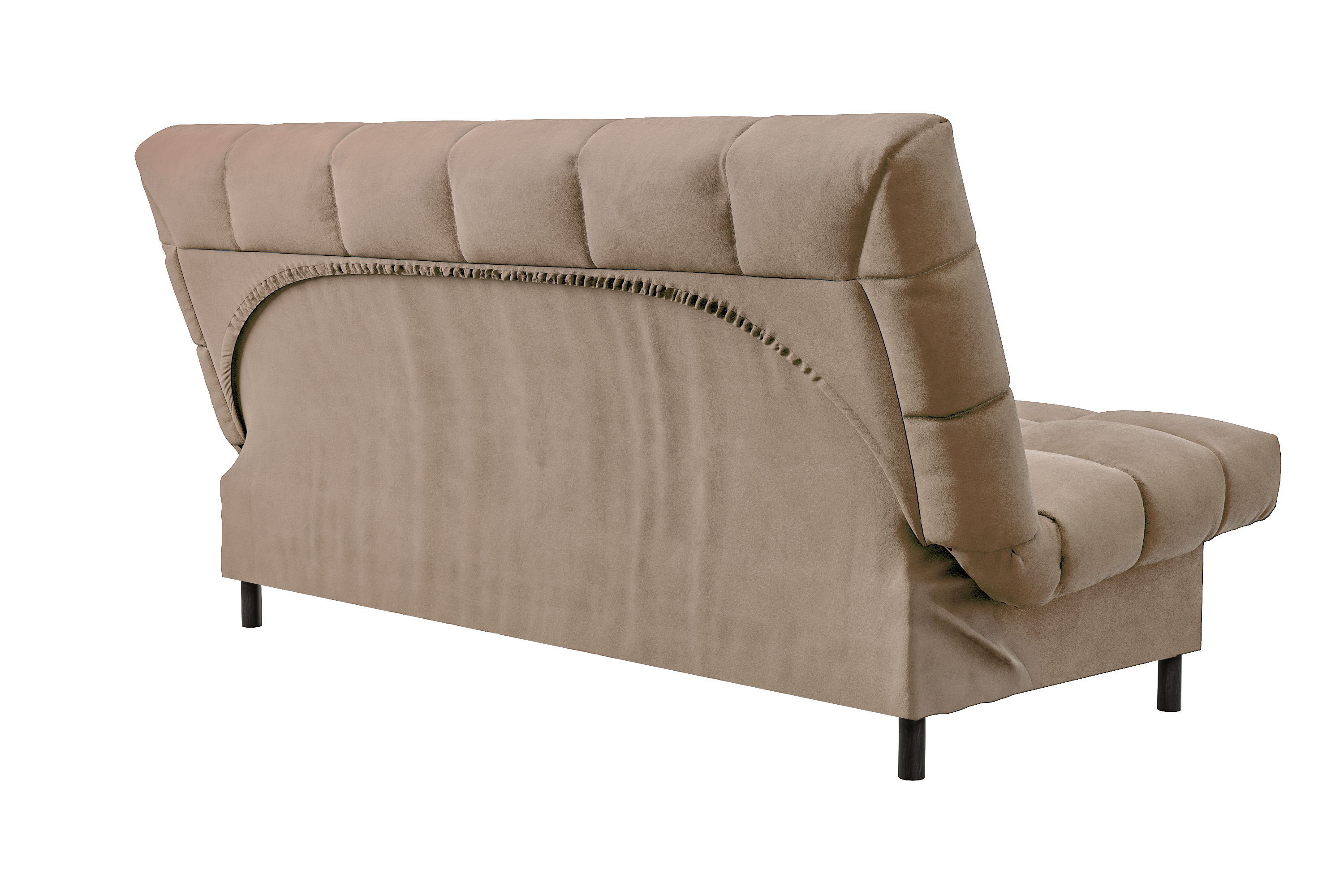 Обивка дивана - мягкий бархатистый велюр. Это тактильно приятная и очень практичная ткань. Всю мягкую поверхность модели украшает строчка прямоугольниками.