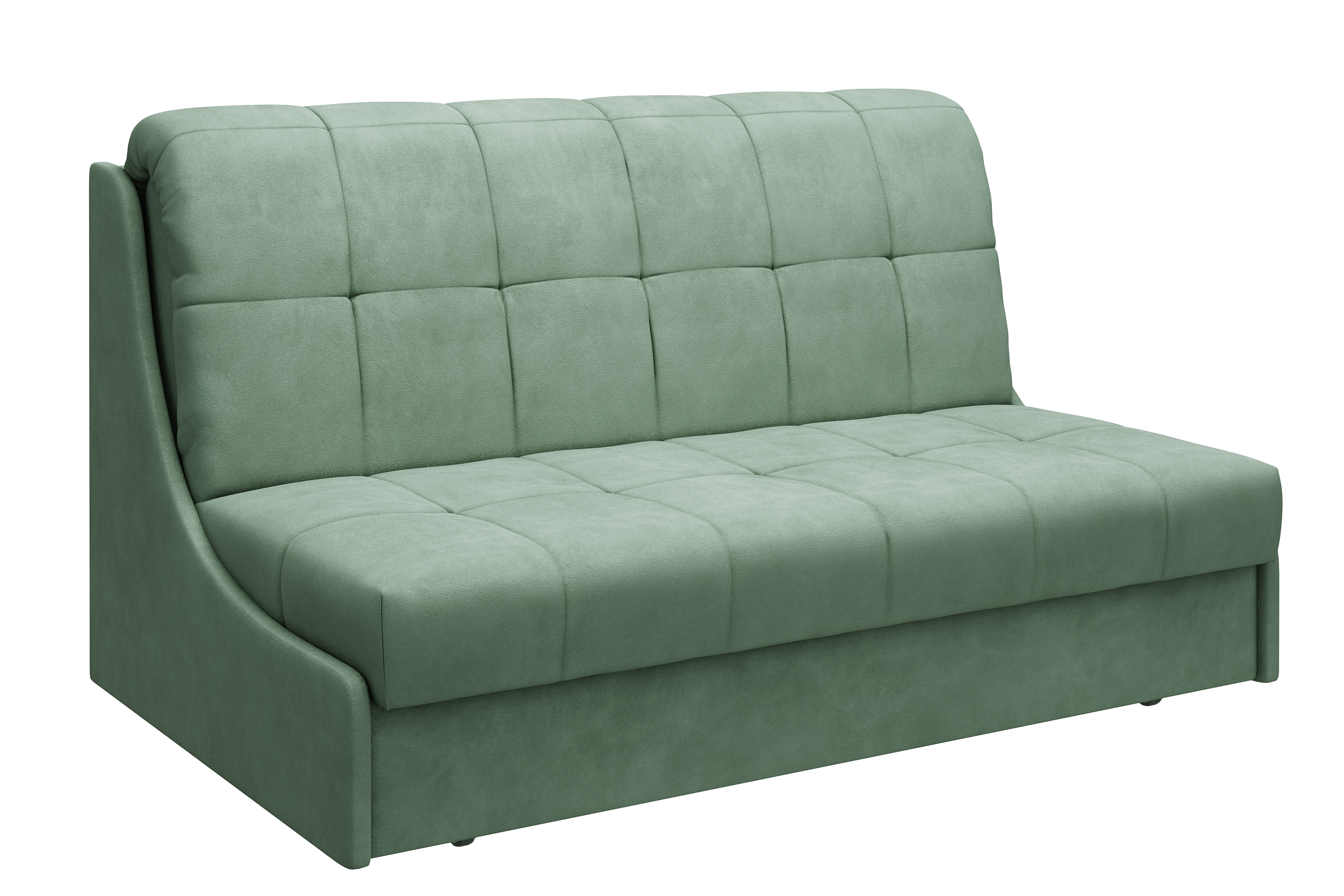 Обивка дивана - мягкий бархатистый велюр. Это тактильно приятная и очень практичная ткань. Всю мягкую поверхность модели украшает строчка прямоугольниками.