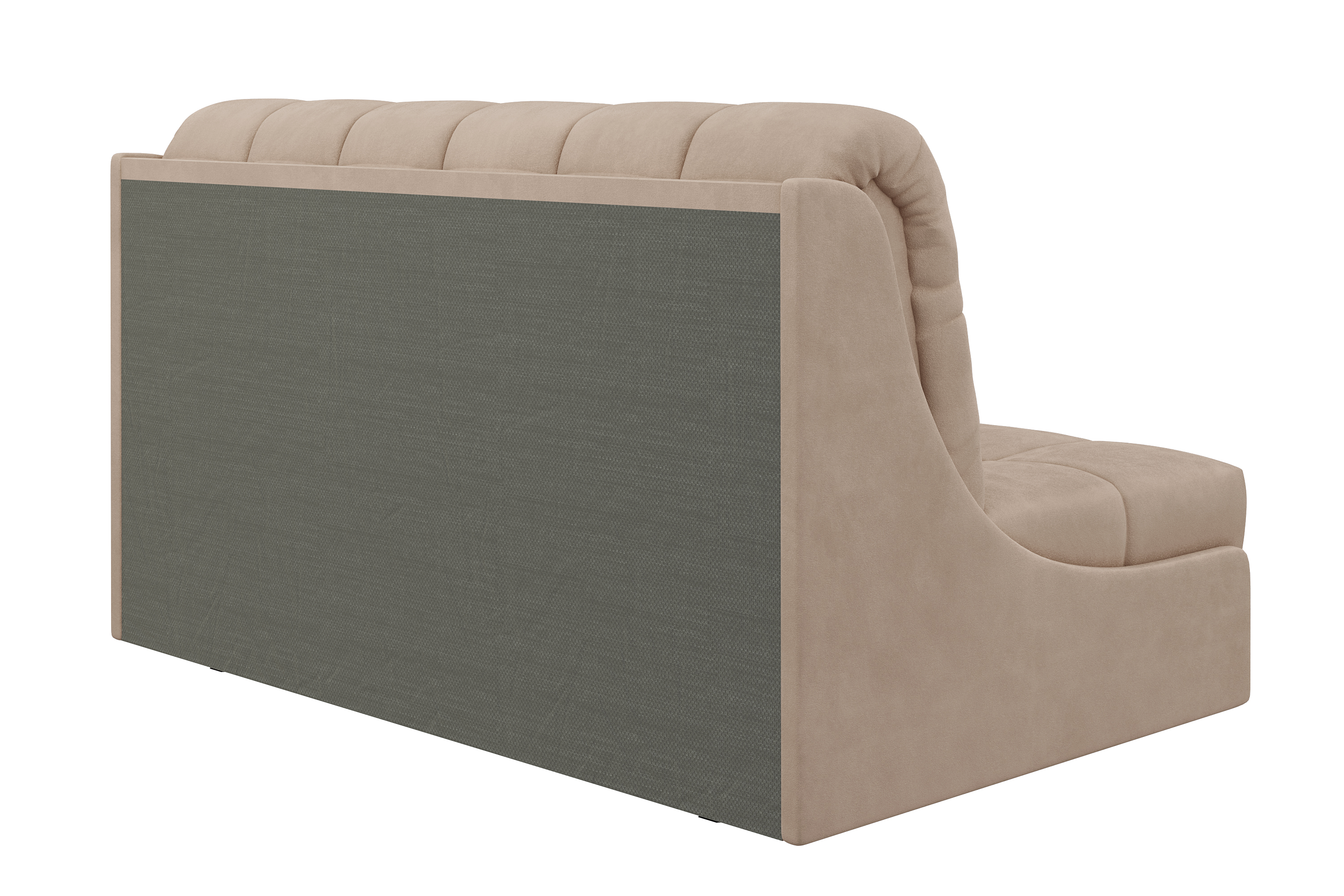Обивка дивана - мягкий бархатистый велюр. Это тактильно приятная и очень практичная ткань. Всю мягкую поверхность модели украшает строчка прямоугольниками.