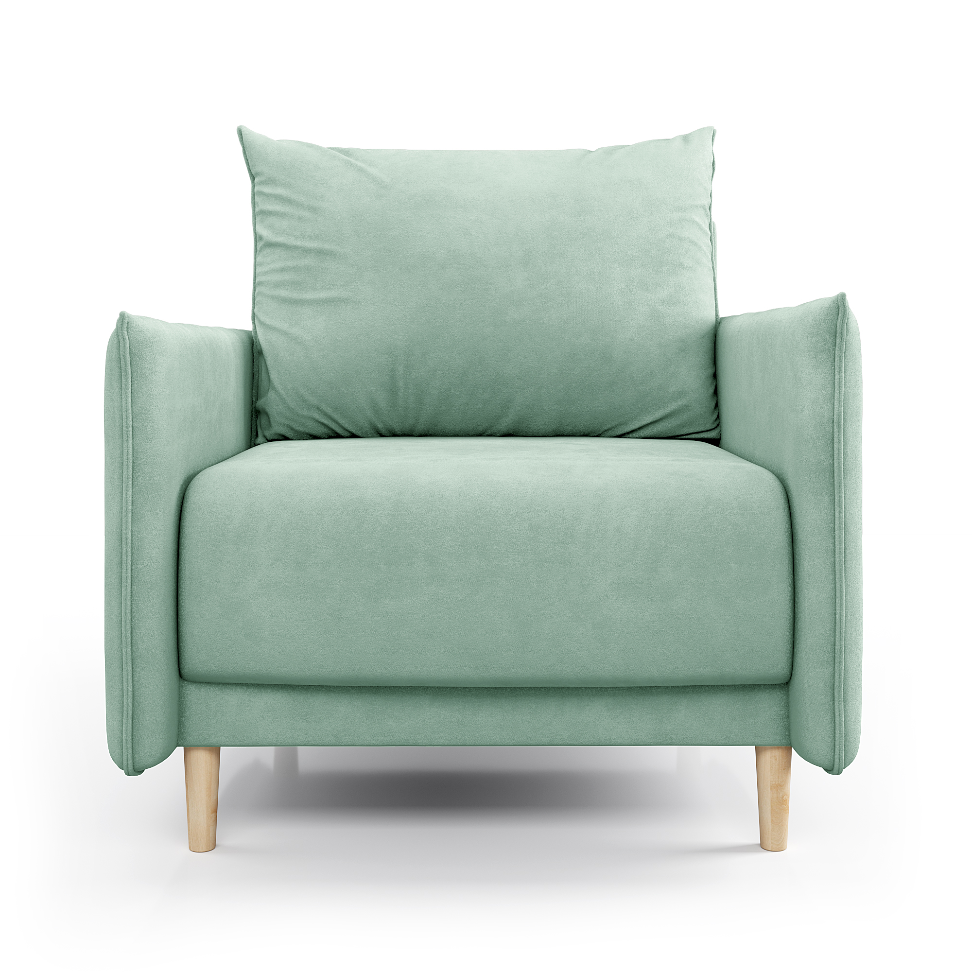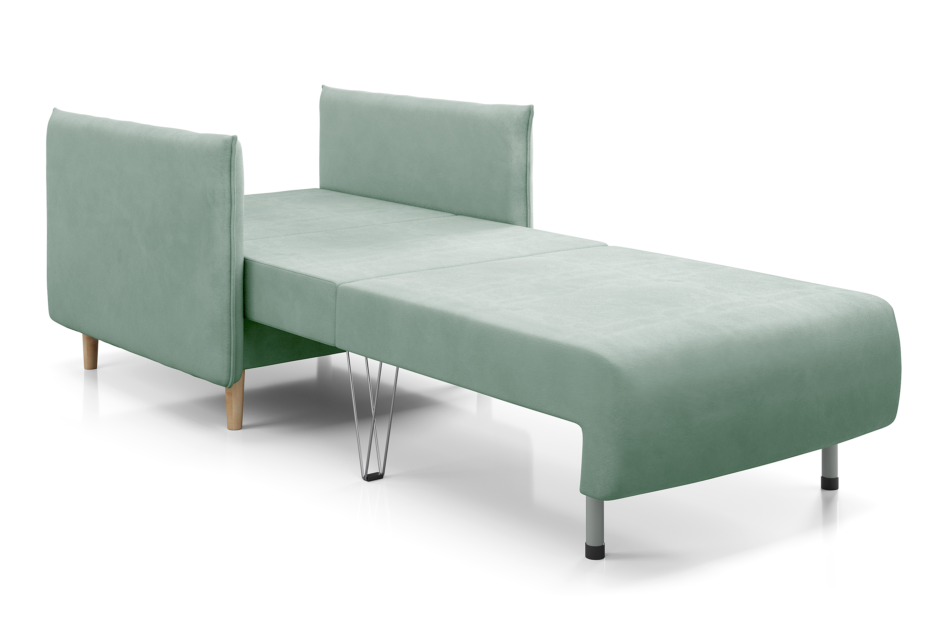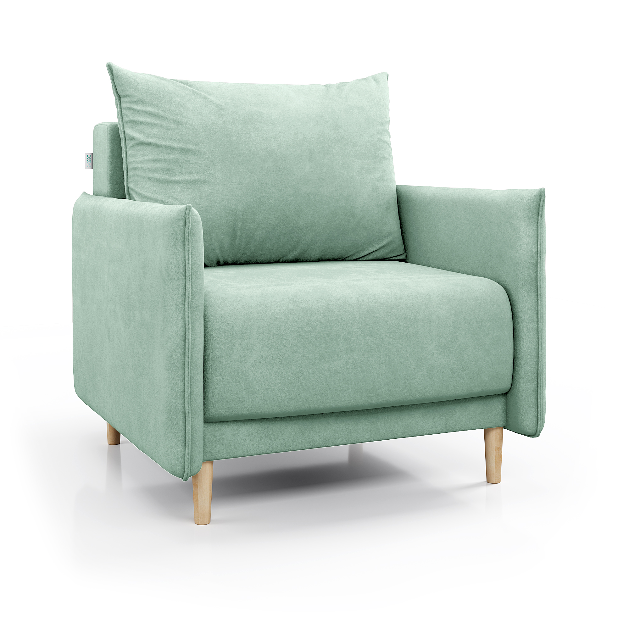 Представляем вашему вниманию мятное кресло из нашей популярной коллекции «Лучший друг». Это удобное место как для отдыха после рабочего дня, так и для приёма гостей – ночью оно легко превращается в комфортную кровать благодаря механизму аккордеон-евро. Прочный каркас из фанеры и ДСП обеспечивает долгий срок службы мебели, а пружинный блок делает её идеальной опорой для вашего тела во время сна. Чехол выполнен из велюровой ткани Velutto благородного мятного цвета, который прекрасно сочетается с любым интерьером.