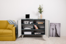 Конструкция комода с 2-мя распашными дверками, за которыми находятся ниши для хранения.