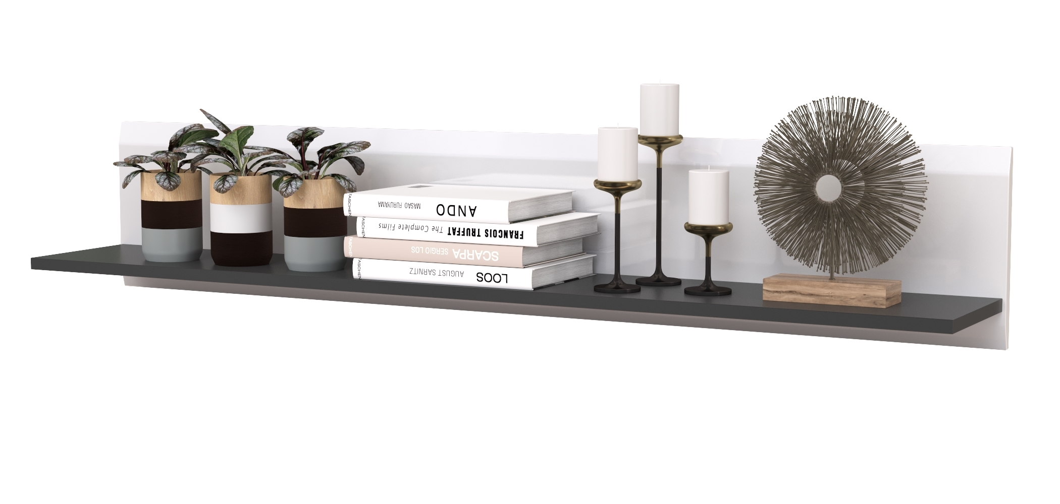 Выполнено в двух цветах: белый/чёрный/белый глянец и антрацит/веллюто капучино.