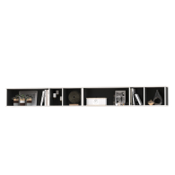 Задняя стенка чёрного цвета эффектно подчеркивает наполнение полки.