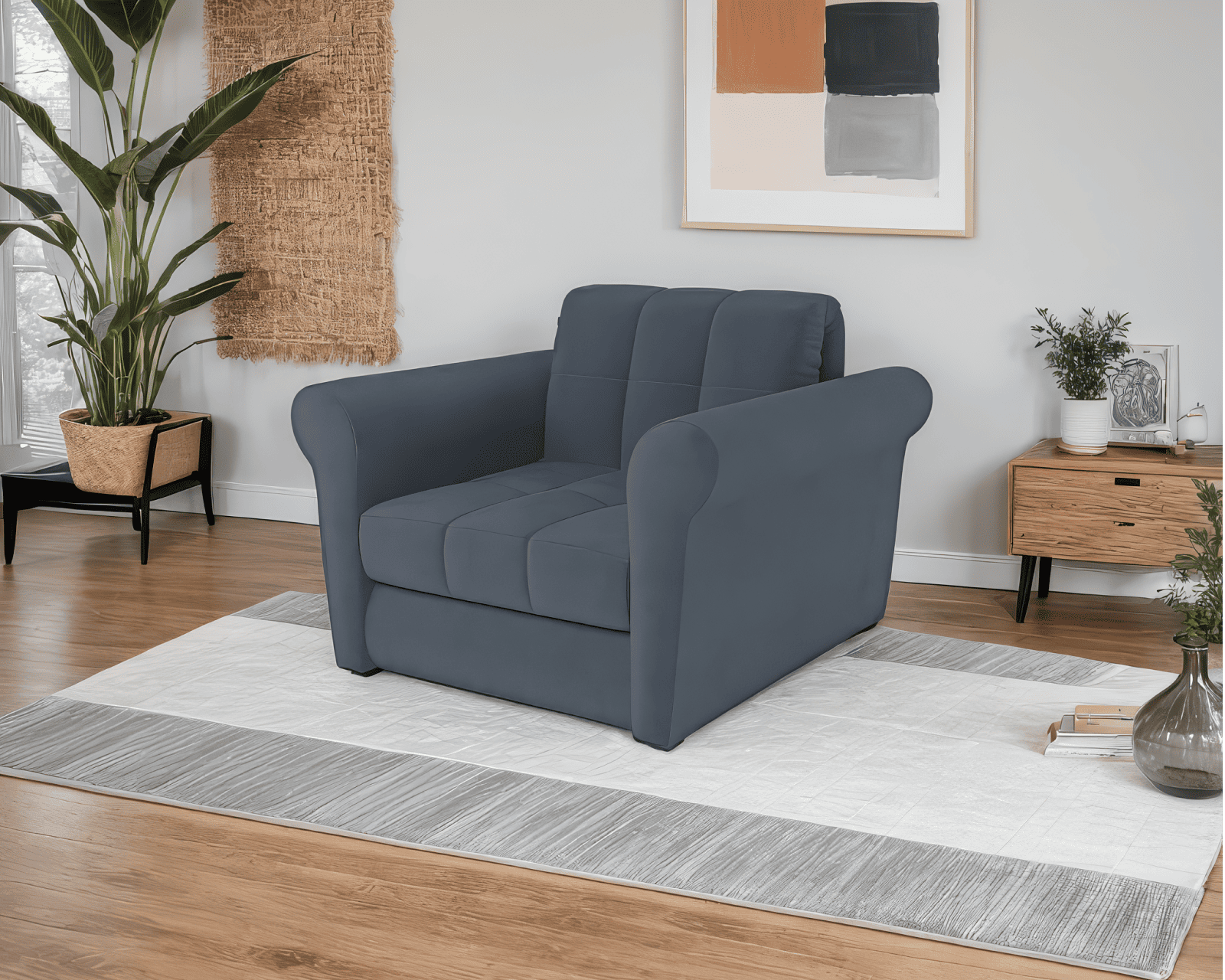 Кресло-кровать «Гранд» воплощает в себе классику и минимализм. Линейное декорирование обивки добавляет креслу дополнительной мягкости и уюта.