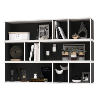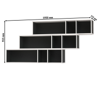 Комплектация состоит из трех полок Сидней 15.57. Каждая полка Сидней 15.57 (в комплектации 3 полки) представляет из себя широкую нишу, разделенную на 3 ассиметричных отделения. Имеет универсальную сборку - разделители внутри полки можно установить как слева, так и справа. Задняя стенка чёрного цвета эффектно подчеркивает наполнение полки.