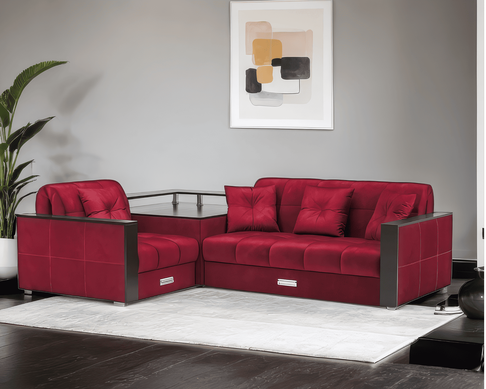 Особенно полюбится вашим домочадцам просторный столик-бар в угловой части дивана. На него можно поставить вазу с цветами или расставить напитки для друзей и наслаждаться просмотром фильма, не отвлекаясь на лишние движения.