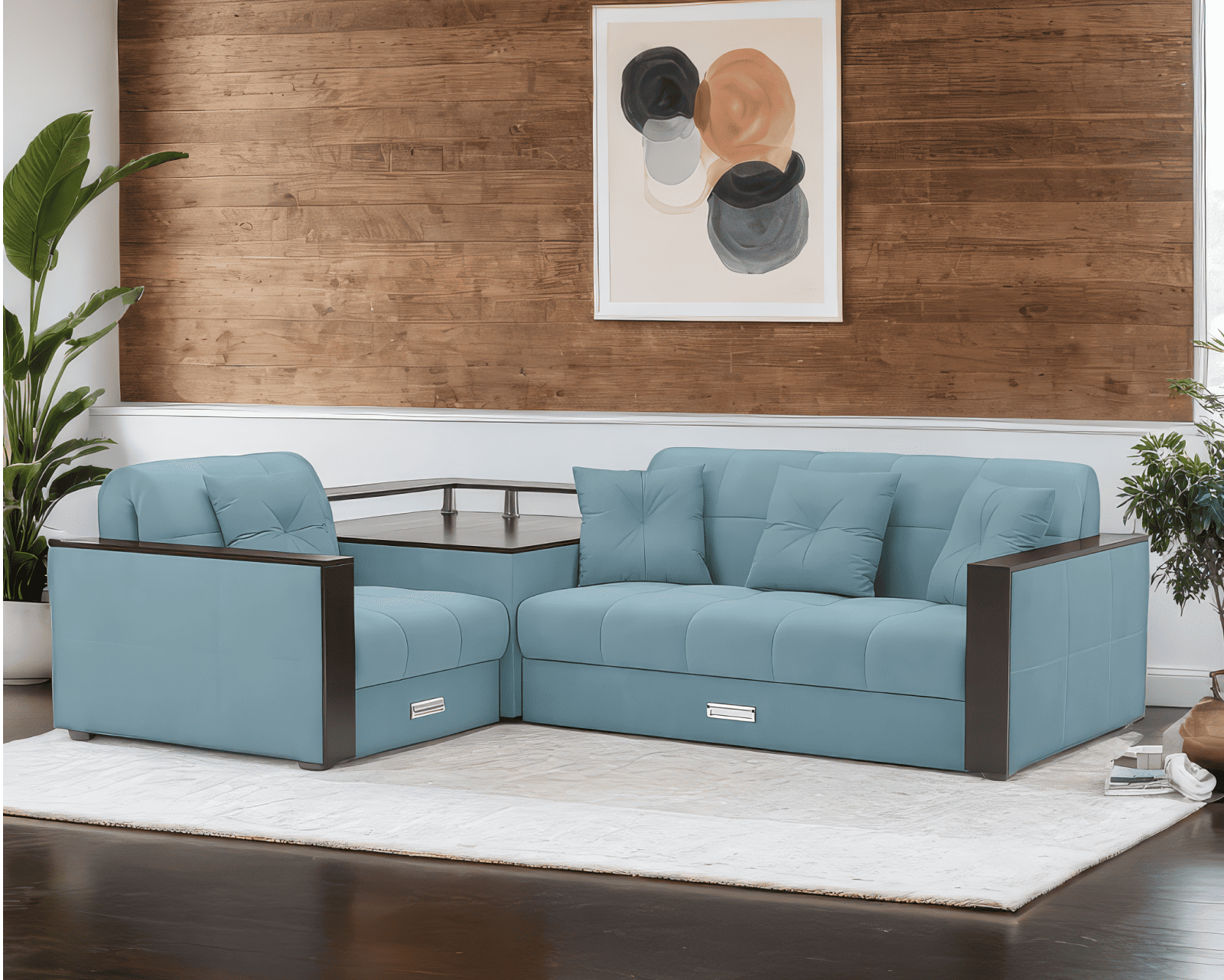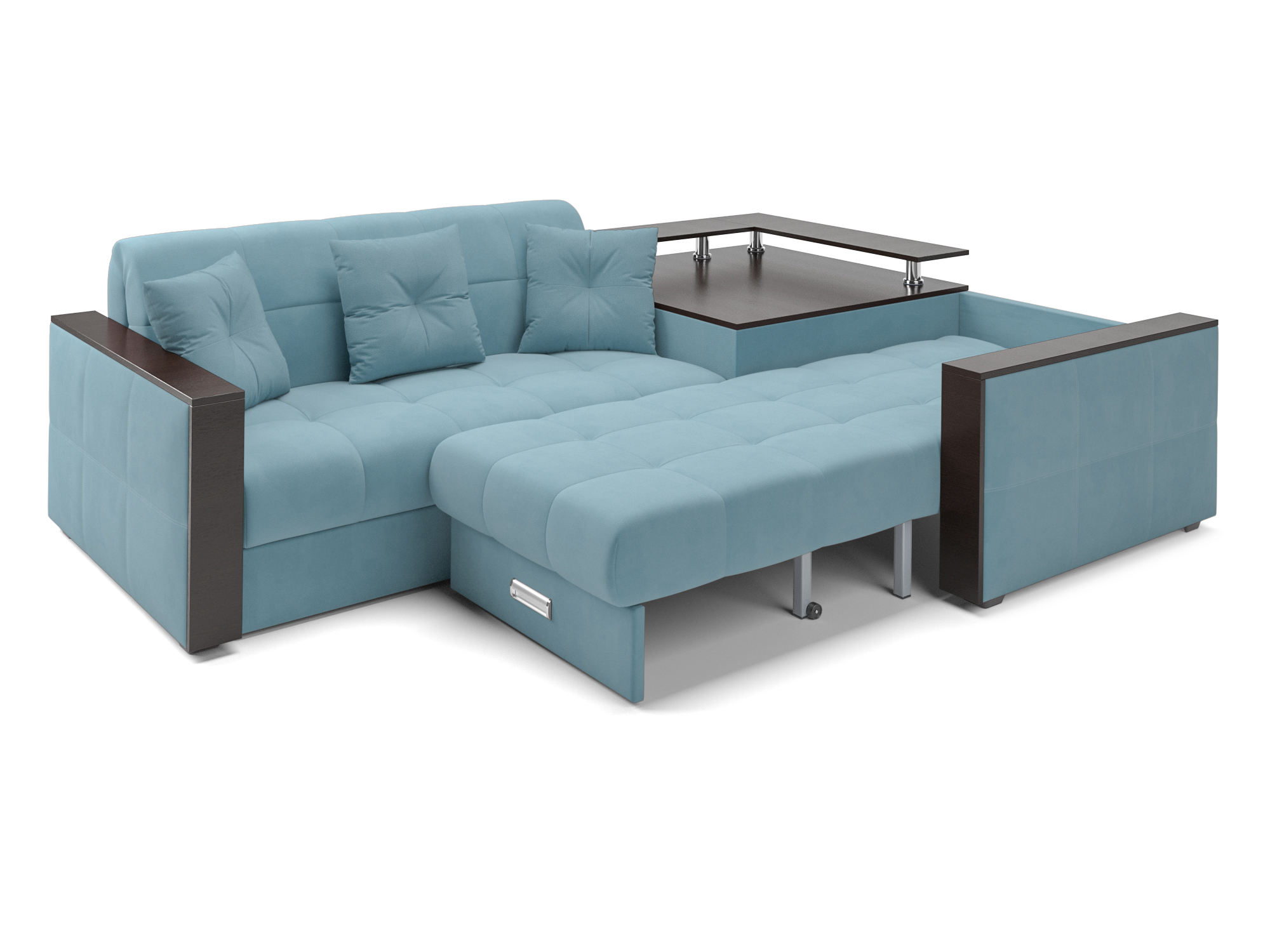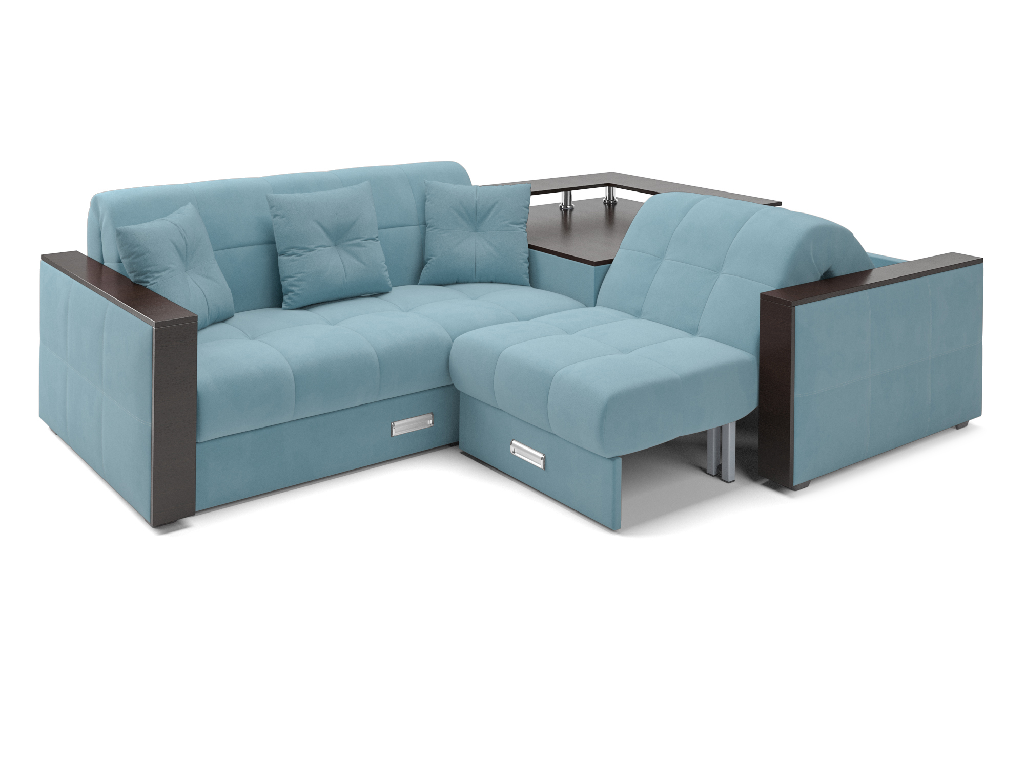 Особенно полюбится вашим домочадцам просторный столик-бар в угловой части дивана. На него можно поставить вазу с цветами или расставить напитки для друзей и наслаждаться просмотром фильма, не отвлекаясь на лишние движения.