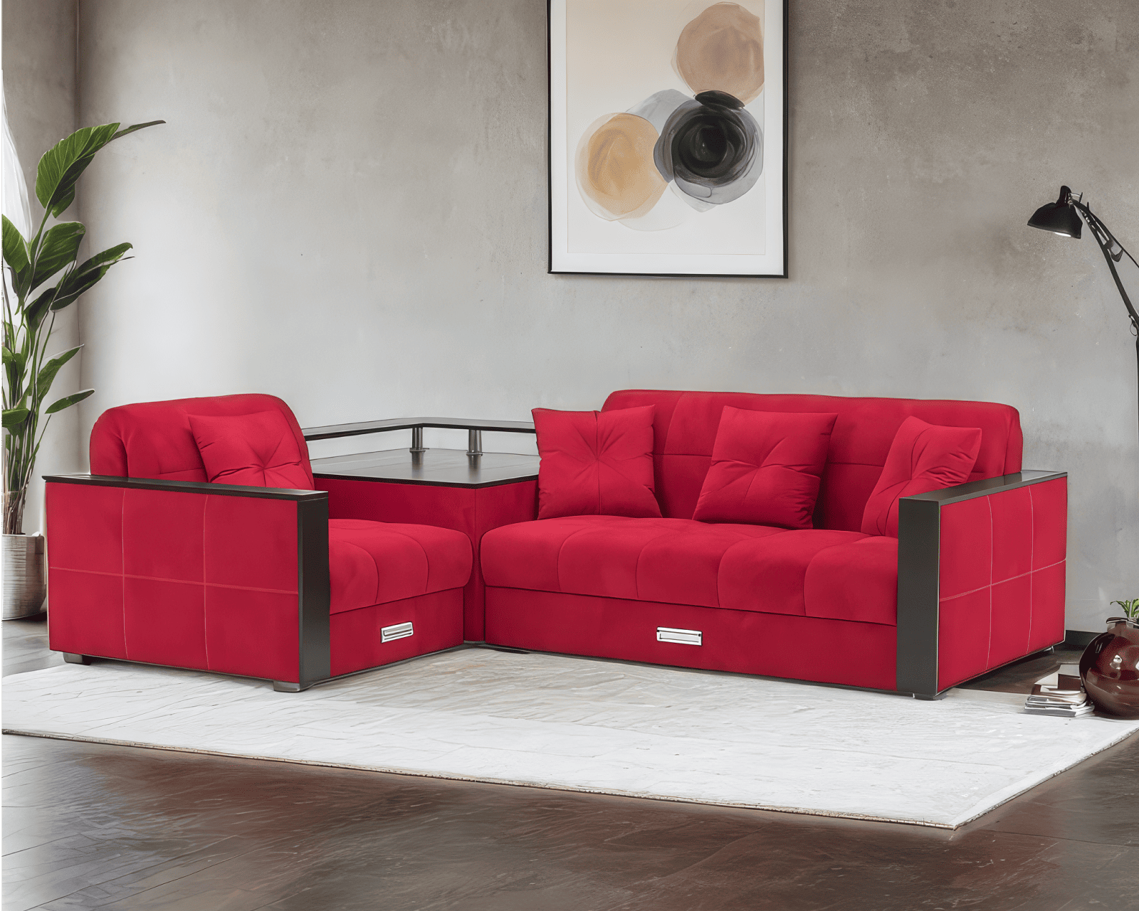 Особенно полюбится вашим домочадцам просторный столик-бар в угловой части дивана. На него можно поставить вазу с цветами или расставить напитки для друзей и наслаждаться просмотром фильма, не отвлекаясь на лишние движения.