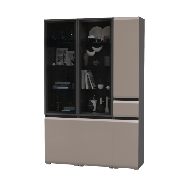 Отзывы о Столплит Горка для гостиной Сидней из шкаф-витрина 2 штуки и шкаф с ящиком 13.202 Антрацит/Капучино