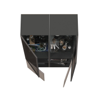 Фасады открываются нажатием, с помощью механизма Push-to-Open, позволяющий отказаться от использования ручек. Распашные фасады оснащены доводчиками, что обеспечивает плавное закрывание и исключает удар о корпус. Универсальная сборка - сторону открывания дверей, Вы определяете при сборке.