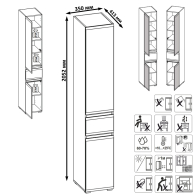 Узкий шкаф Сидней 13.202 состоит из верхнего и нижнего отделений с полками за дверкой и выдвижным ящиком по центру на шариковых направляющих. В верхнем отделении три полки, в нижней 1 полочка. Чёрная задняя стенка эффектно подчеркивает наполнение шкафов.