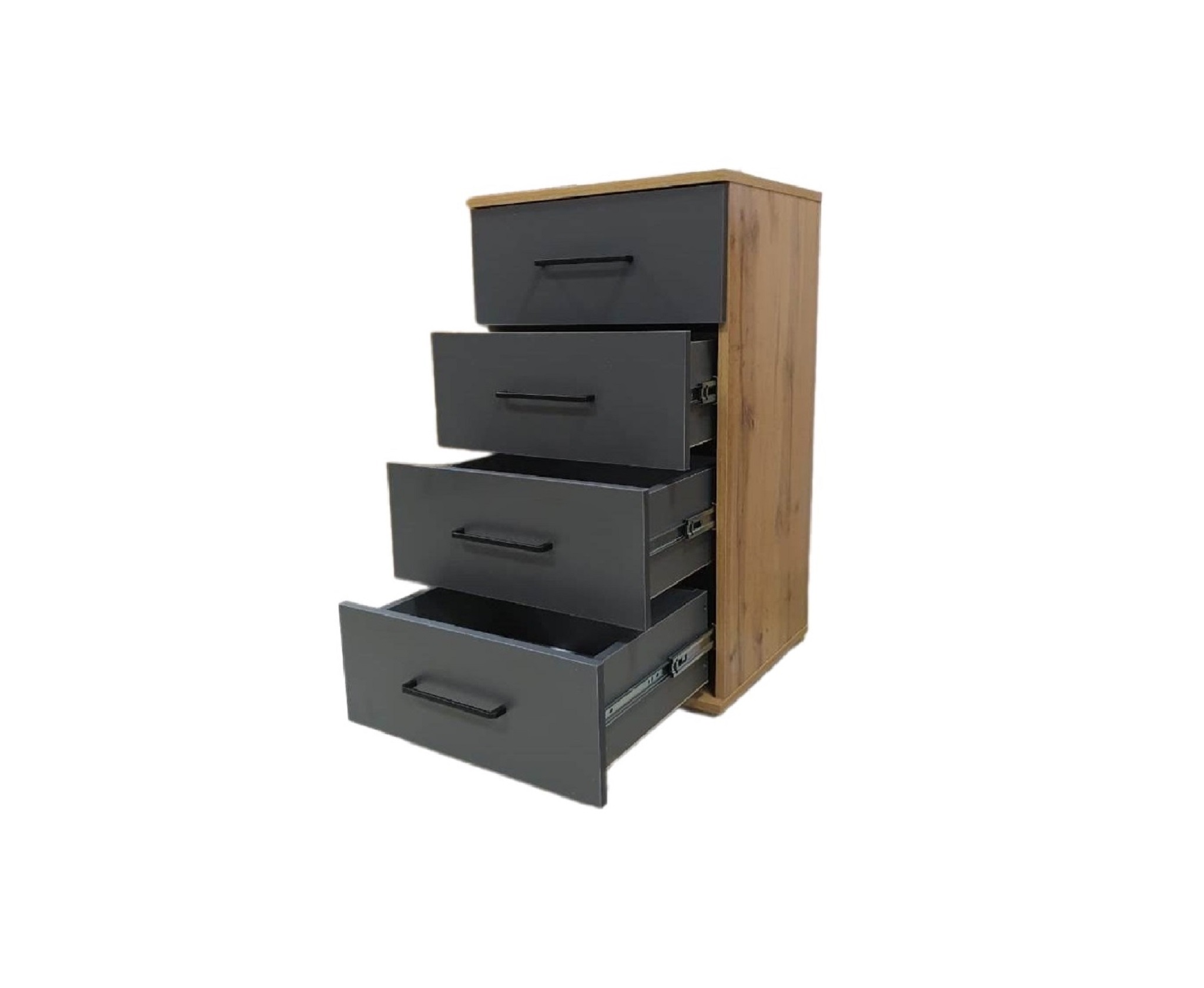 Конструкция с 4 ящиками на шариковых направляющих, полного выдвижения.
