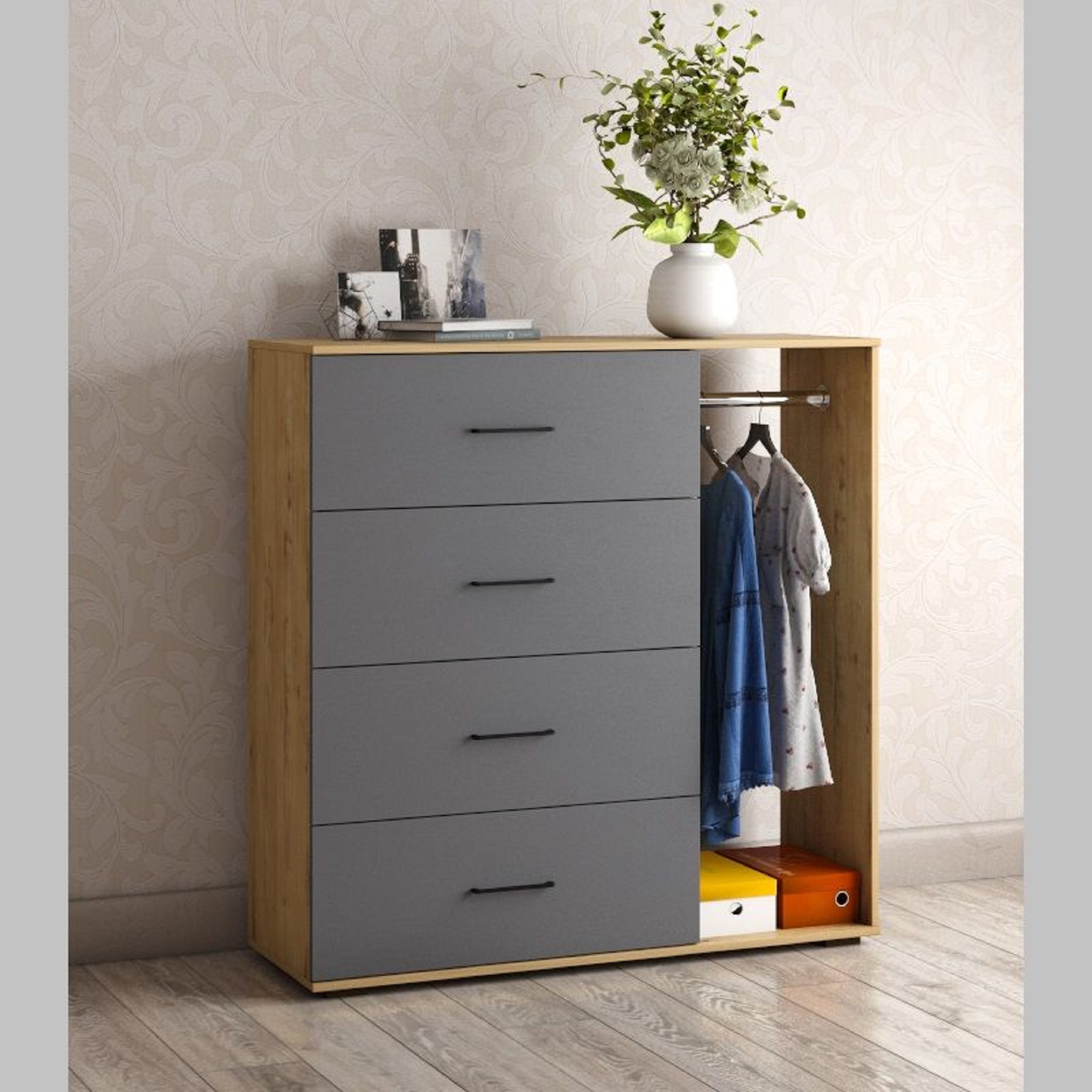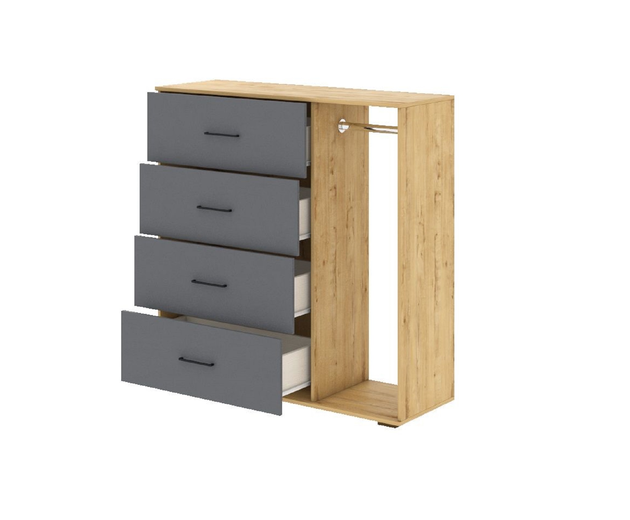 С правой стороны комода установлена штанга для плечиков с одеждой.