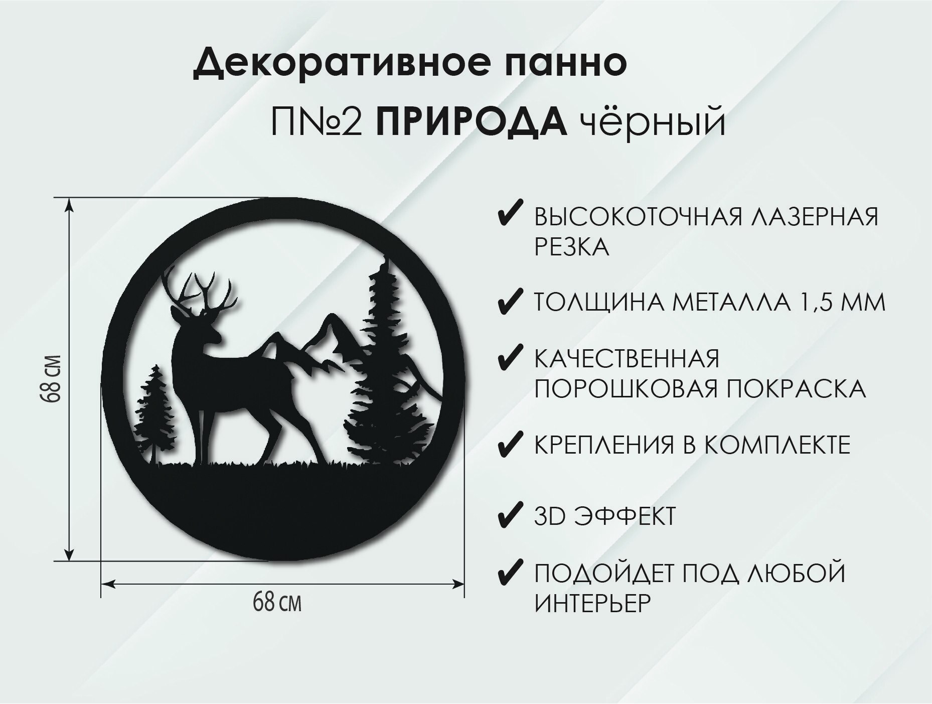 Откройте для себя декоративное панно из надежного металла с толщиной 1,5 мм, выполненное с применением лазерной обработки. Это уникальное изделие представлено в трех элегантных цветах: чёрном, кремово-белом и бронзовом.