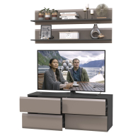 Отзывы о Столплит Две открытых полочки с тумбой для аппаратуры Сидней Антрацит/Капучино
