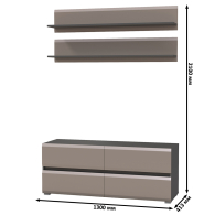Комплектация состоит из тумбы под ТВ Сидней 13.63 и двух полок открытых Сидней 16.486.