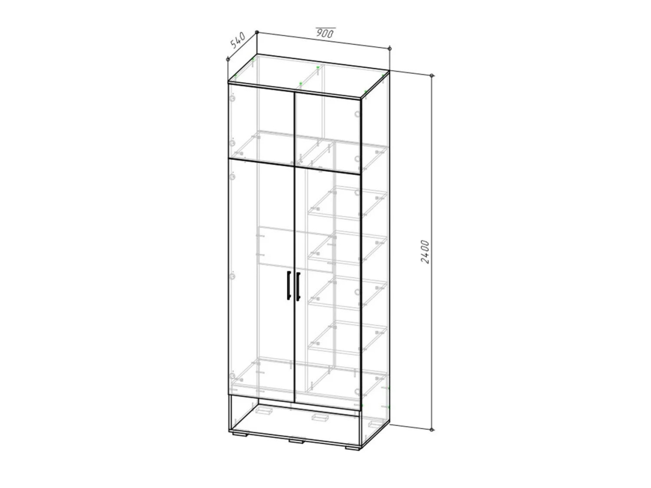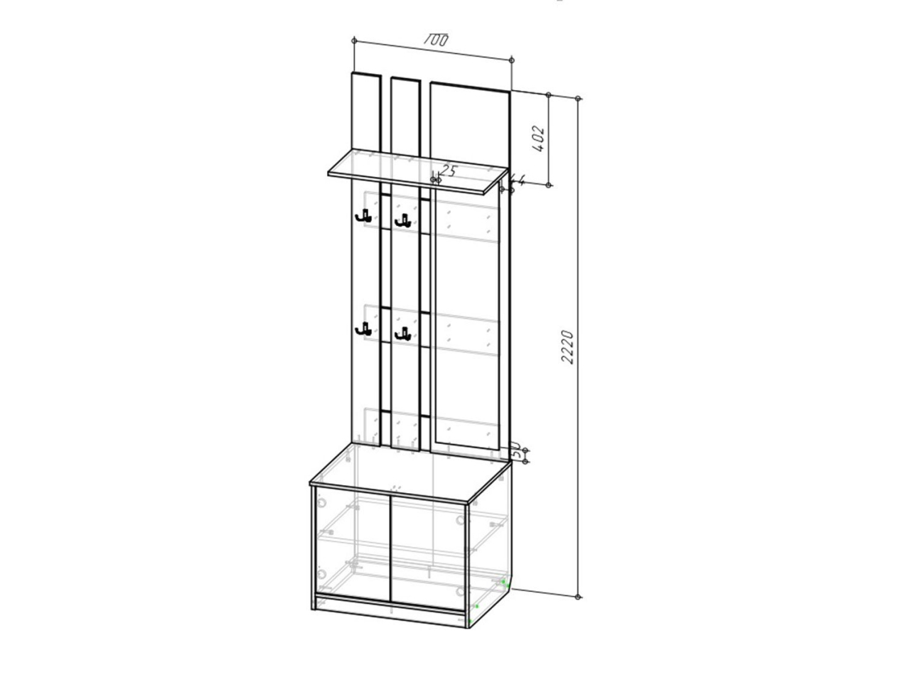 Шкаф для прихожей (900х520, h2400мм), Вешалка сзеркалом (700х520, h2272мм).