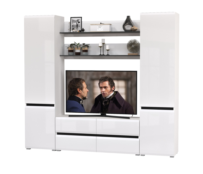 Выполнено в двух цветах: белый/чёрный/белый глянец и антрацит/веллюто капучино.