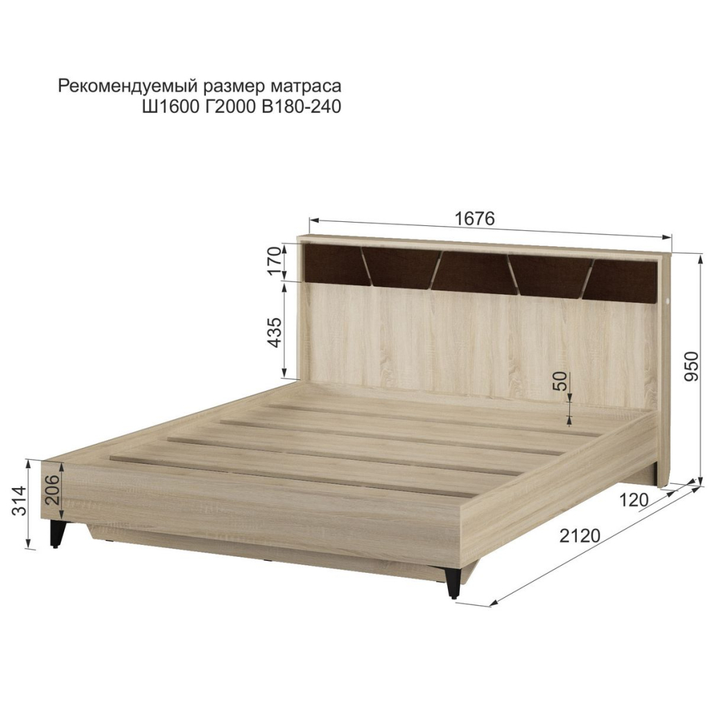 Кровать 160 с подъемным механизмом (1688x2125, h950 мм, спальное место 1600х2000 мм), Тумба прикроватная ТП-1 /2шт./ (450x423, h455 мм), Комод (800x473, h837 мм), Шкаф 4-х створчатый (1600x550, h2171 мм). Спальное место: 1600х2000 мм.