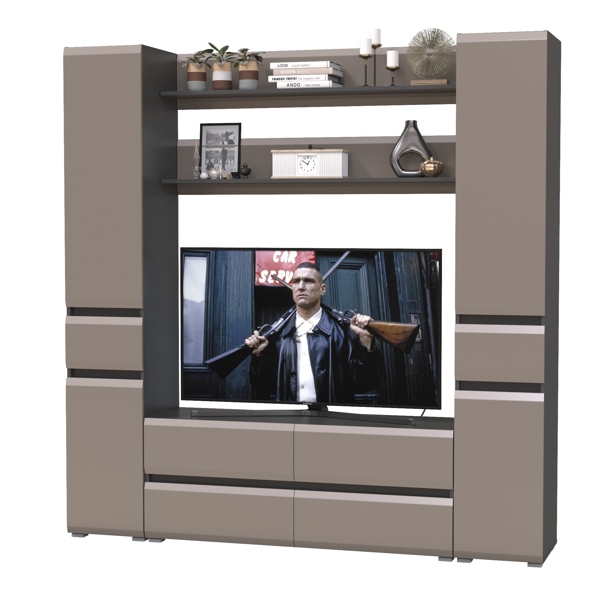 Отзывы о Столплит Два пенала с ящиком с двумя полочками и ТВ-тумбой Сидней Антрацит/Капучино